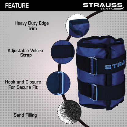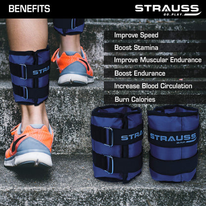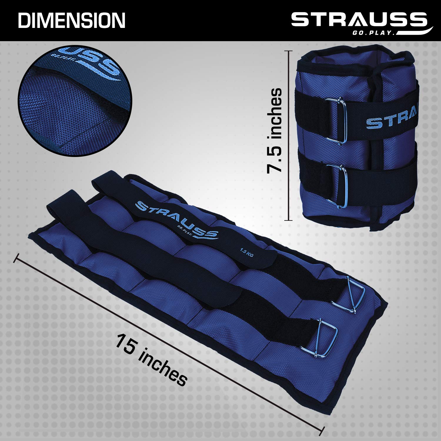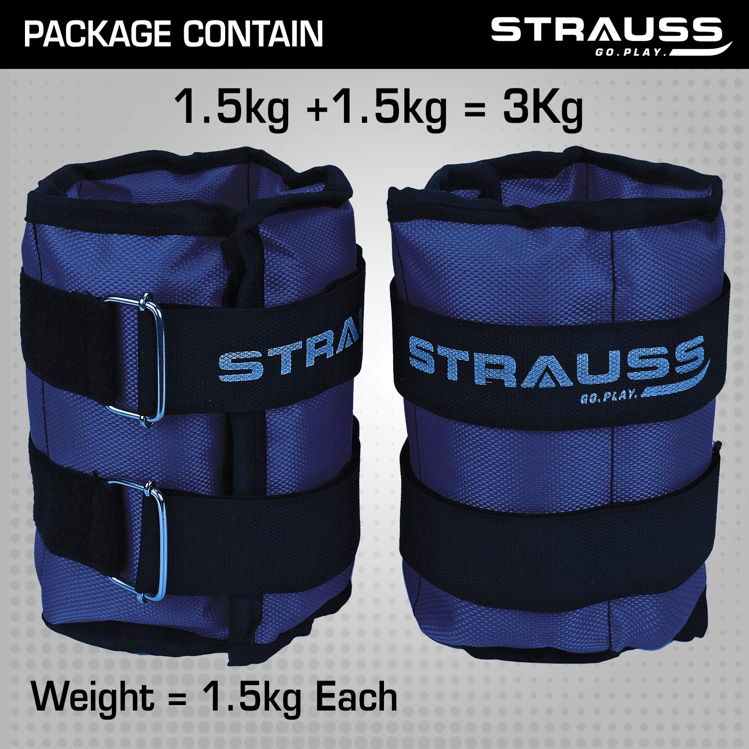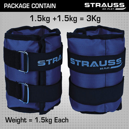 Strauss Adjustable Ankle/Wrist Weights 1.5 KG X 2 | Ideal for Walking, Running, Jogging, Cycling, Gym, Workout & Strength Training | Easy to Use on Ankle, Wrist, Leg, (Blue)