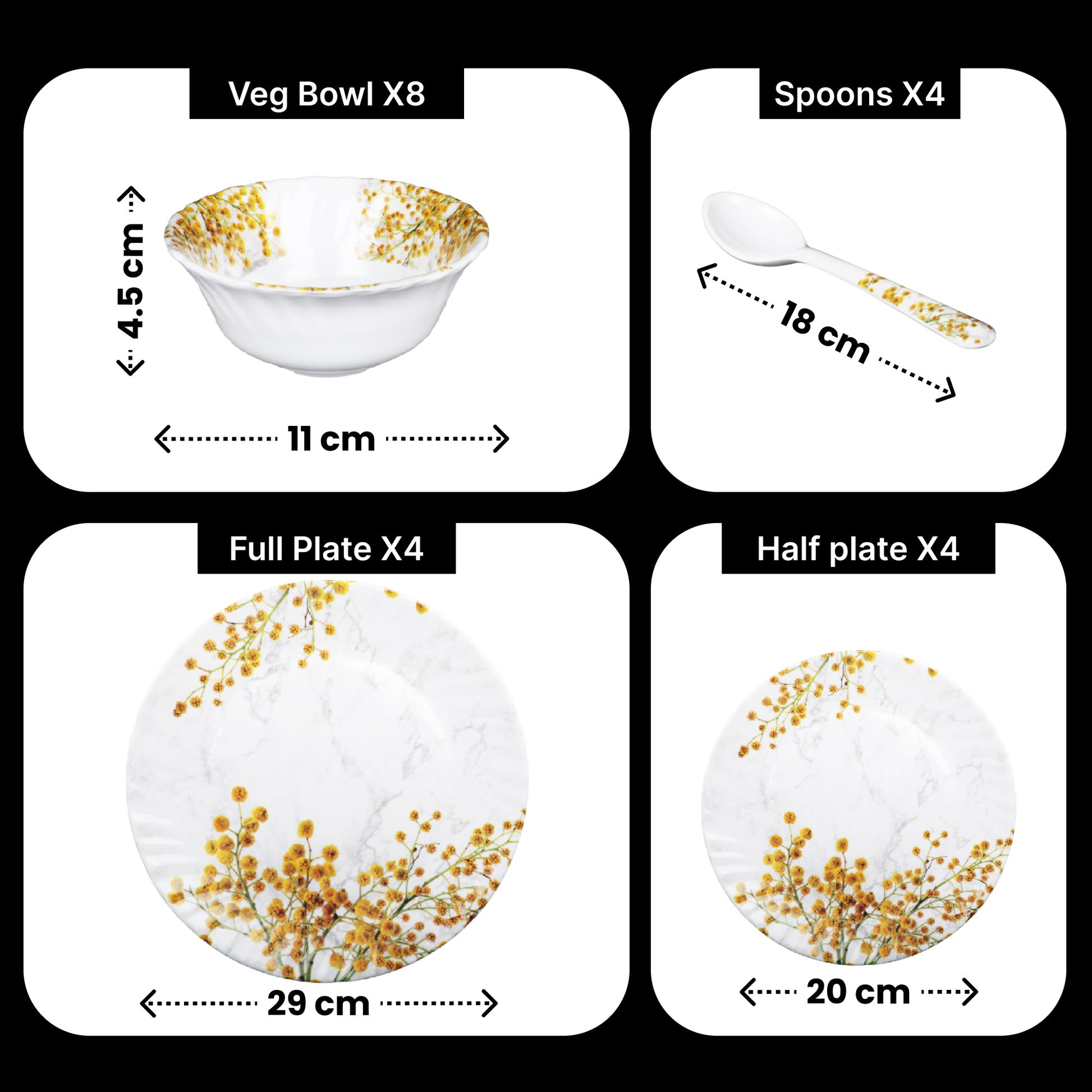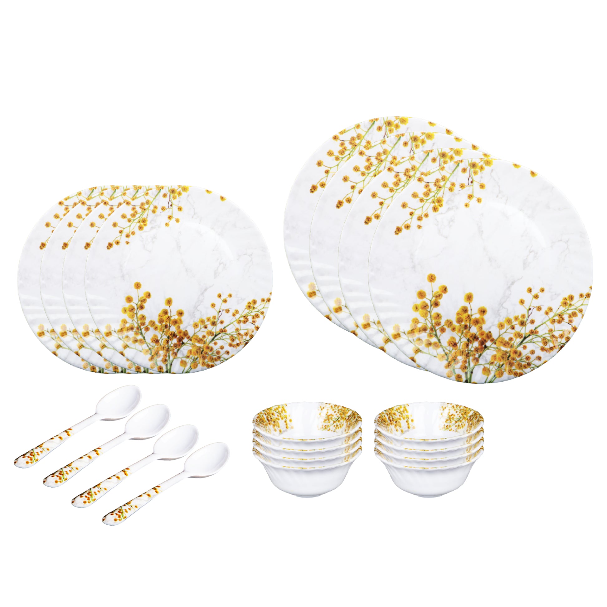 Pack of 20: Melamine Dinner Set with Floral Design | Serves 4 | Orange & White