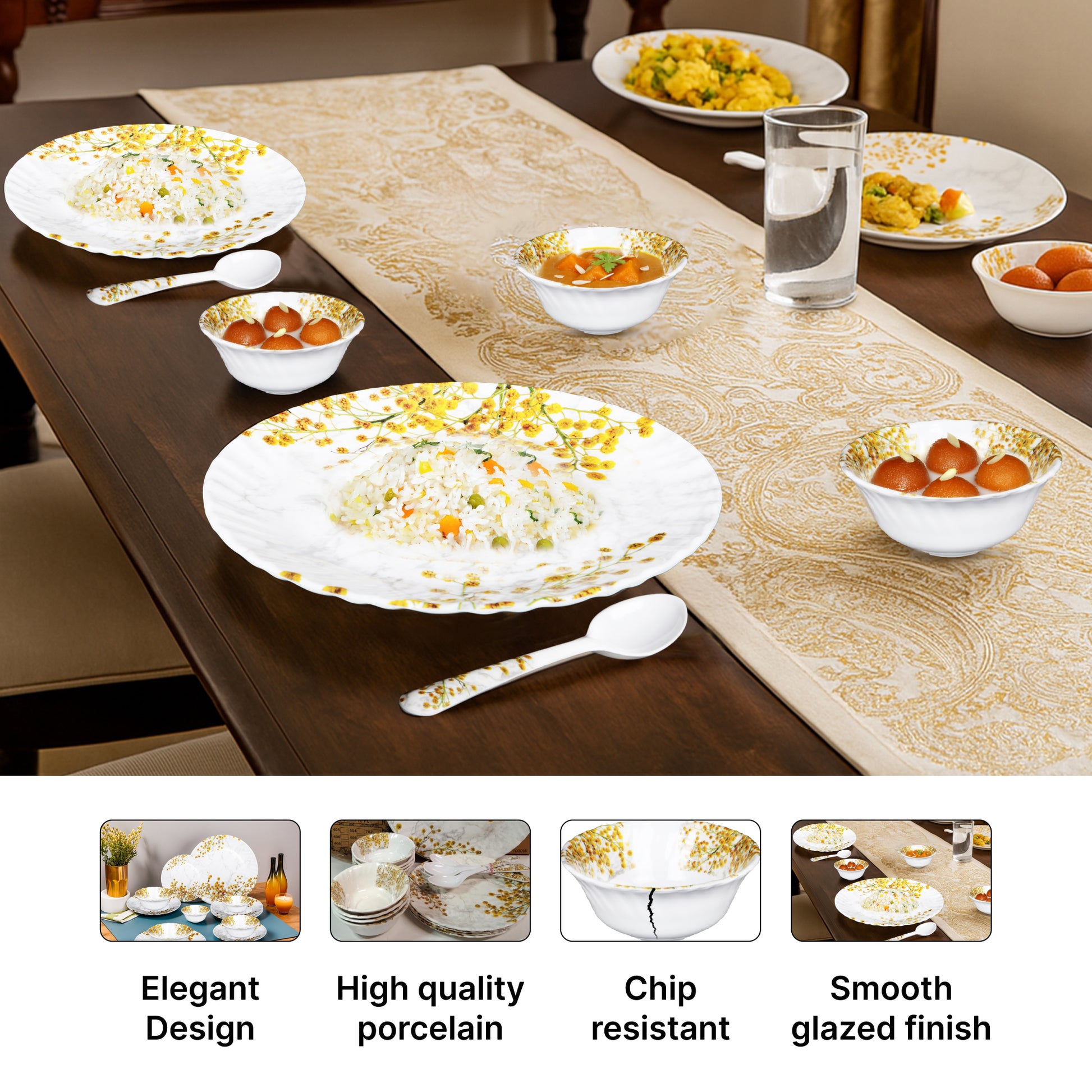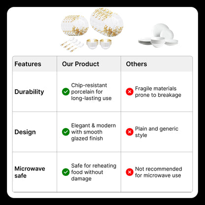 This dinner set makes a stunning choice for gifting, whether for weddings, housewarmings, or festive celebrations. Users appreciate the quality and design, noting it as a beautiful addition to their kitchen dinnerware set, perfect for entertaining guests during festivals, birthdays, or casual weeknight dinners. The stackable design allows for easy, space-saving storage, while the dishwasher-safe materials save you time after meals.