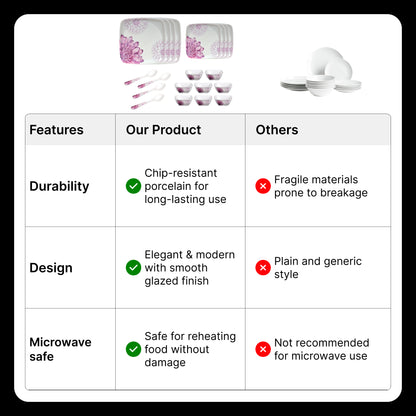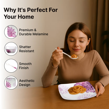 Whether you're hosting festive gatherings or simply enjoying a meal at the dining table, this versatile crockery set becomes a cherished addition in any household. Designed for both indoor and outdoor use, this melamine dinner set is perfect for serving meals for parties, allowing you to dine with style and simplicity while meeting your dining expectations. Enjoy the thoughtful layout and design that make every meal feel special with this dinner set – an essential for effective meal presentation and enjoyment.