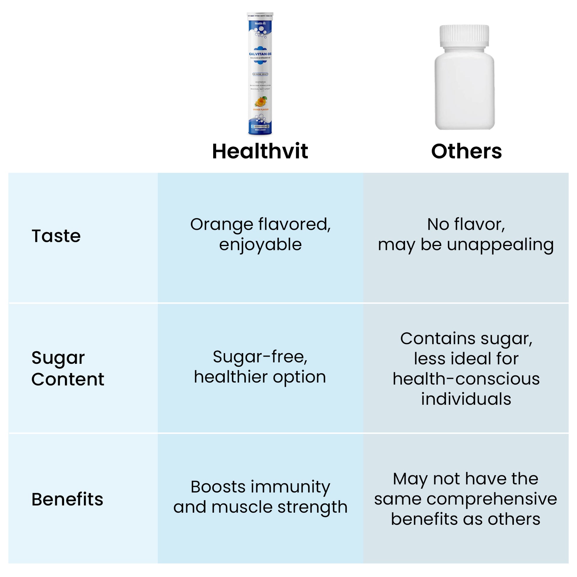 Invest in your health naturally with Healthvit Calvitan Vitamin D3 Effervescent Tablets and enjoy the journey towards a stronger and healthier you!