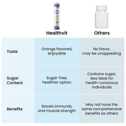 The Healthvit Calvitan tablets can easily fit into your daily routine, whether you're at the gym, at work, or relaxing at home. Simply drop a tablet in 200 ml of water, wait for it to dissolve, and enjoy a fizzy health drink that’s both refreshing and nutritious.