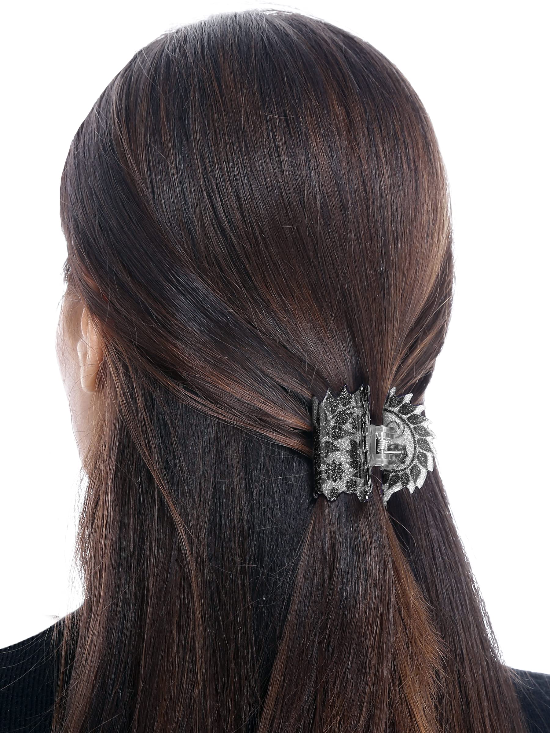 Introducing the Pack of 3 Glittering Hair Clutches by Yellow Chimes, your go-to hair accessories for every occasion! This versatile set includes three uniquely designed clips that feature a beautiful shining texture, perfect for adding a touch of elegance to your style. Each clip measures 4.3 cm in length and 4 cm in width, crafted from durable celluloid acetate material that ensures longevity and style.