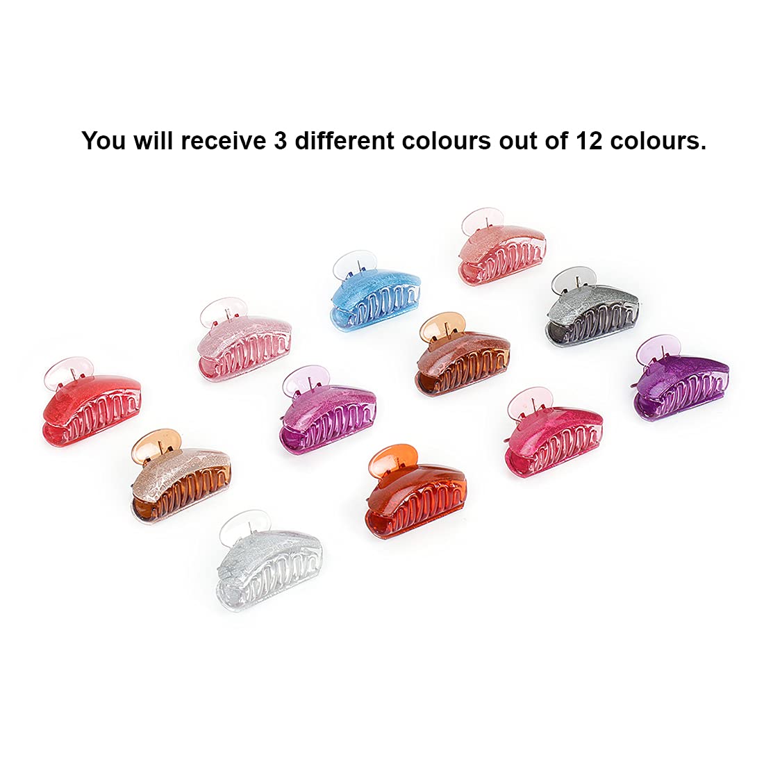 Yellow Chimes Hair Clutchers for Women 3 Pcs Hair Claws Clutchers Multicolor Glittering Clutchers Hair Accessories for Women and Girls.