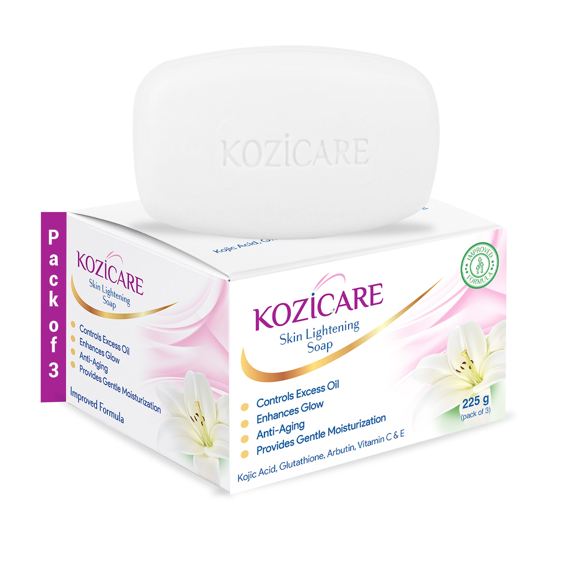 HealthVit Kozicare Skin Lightening Soap Pack Of 3 Kojic Acid Soap & Vitamin C Anti Aging & Sun Protection Moisturizing Bath Soap For Men & Women Remove Dark Spots & Hyperpigmentation Glowing Skin