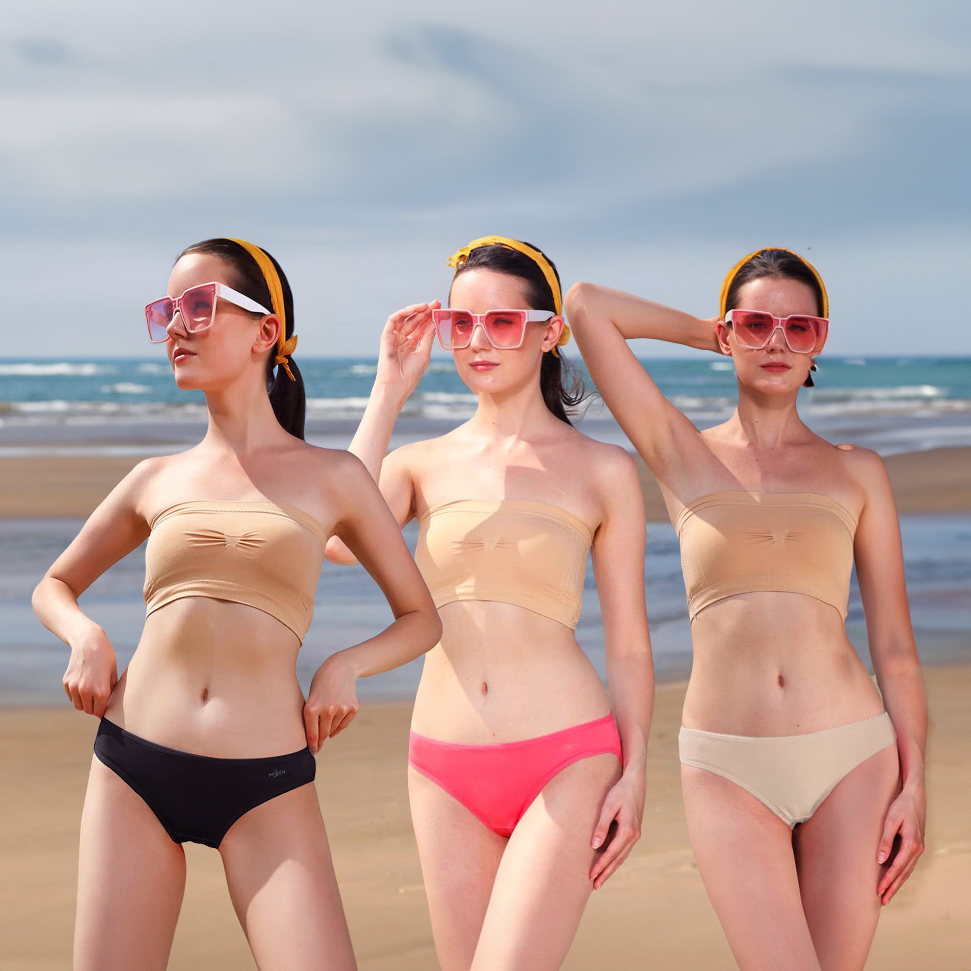 Pack of 3: Bamboo Bikini Briefs - Comfortable, Antimicrobial | S Size | Rose Pink, Beige, Black