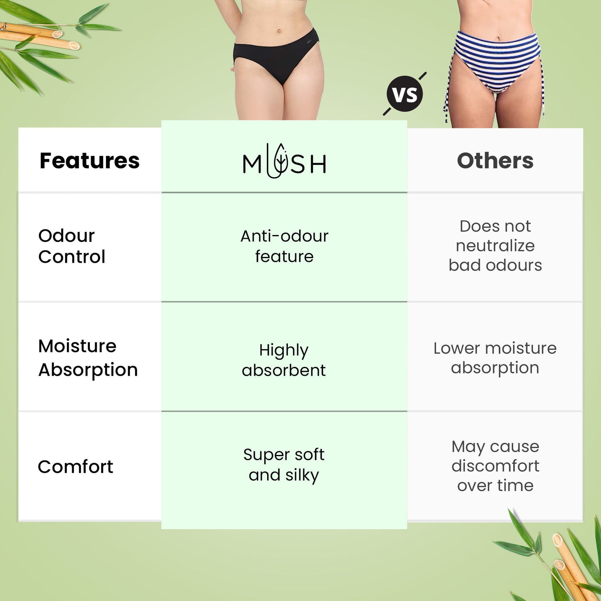 Whether at work, in the gym, or enjoying a leisurely day at home, the Mush Bamboo Bikini Briefs are designed for all women looking for comfort, support, and style. Experience the difference with these premium bamboo panties that cater to your lifestyle needs.