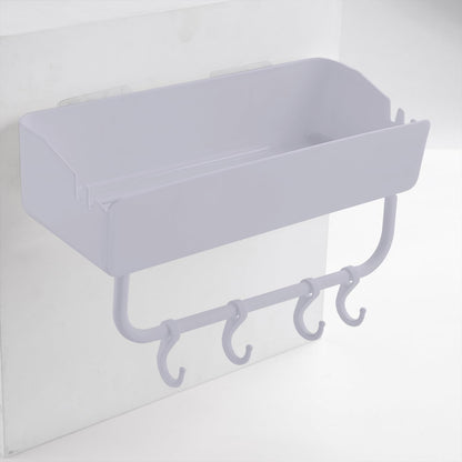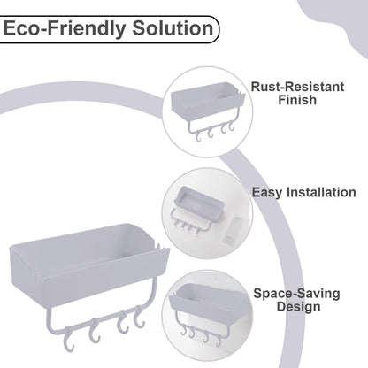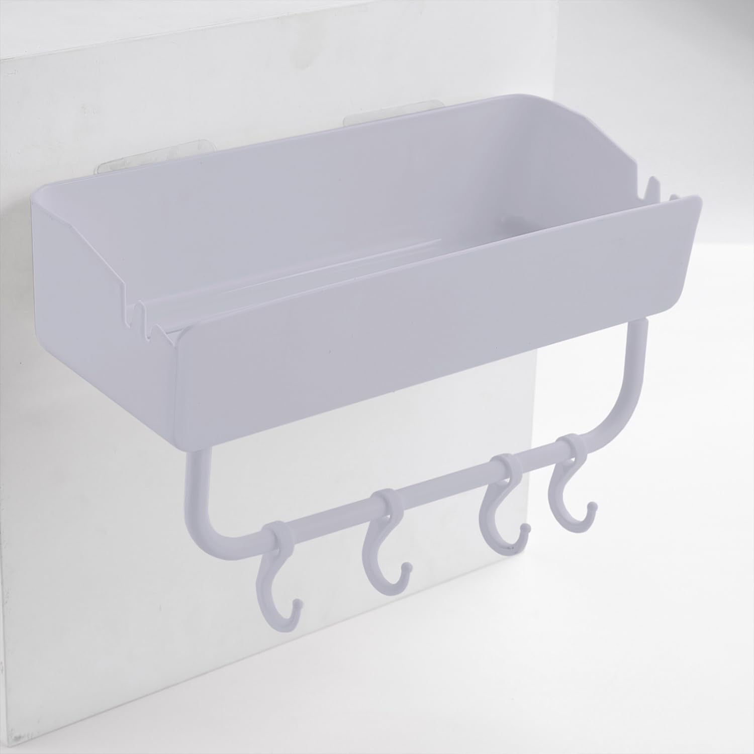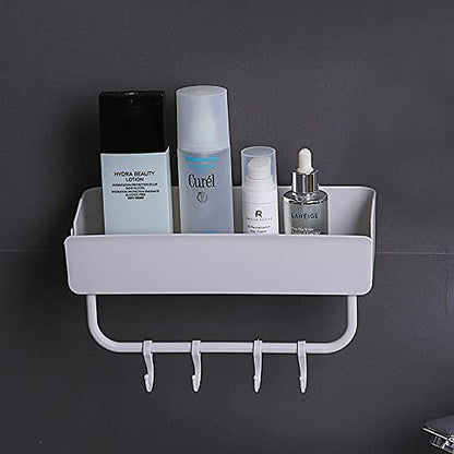 Pack of 4 Bathroom Shelves | Kitchen Organizer with Hooks | Multipurpose Rectangular Wall Shelves | Self-Adhesive | Bathroom Corner Organizer | Storage Racks | DC-001GR | Grey