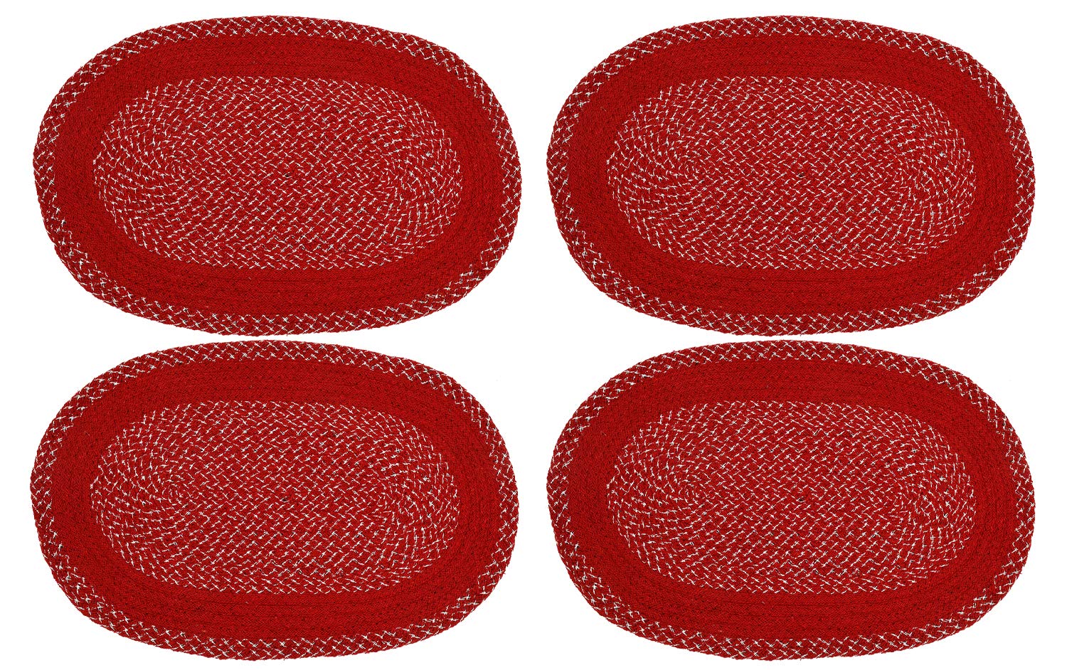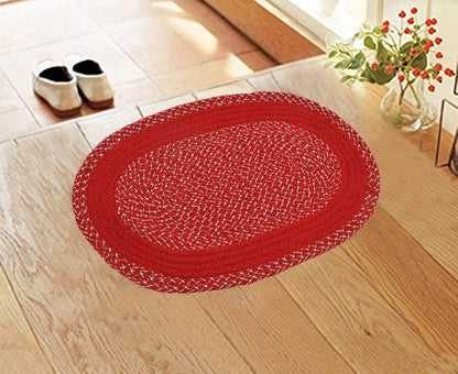 Kuber Industries Oval Design Soft Cotton Blend Anti Slip 4 Pieces Door Mat 18"x26"(Maroon) CTKTC33730