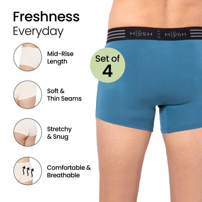 Pack of 4: Trunks with Antimicrobial Feature | Everyday Casual Wear | Small Size | White, Blue, Black, Melange Grey