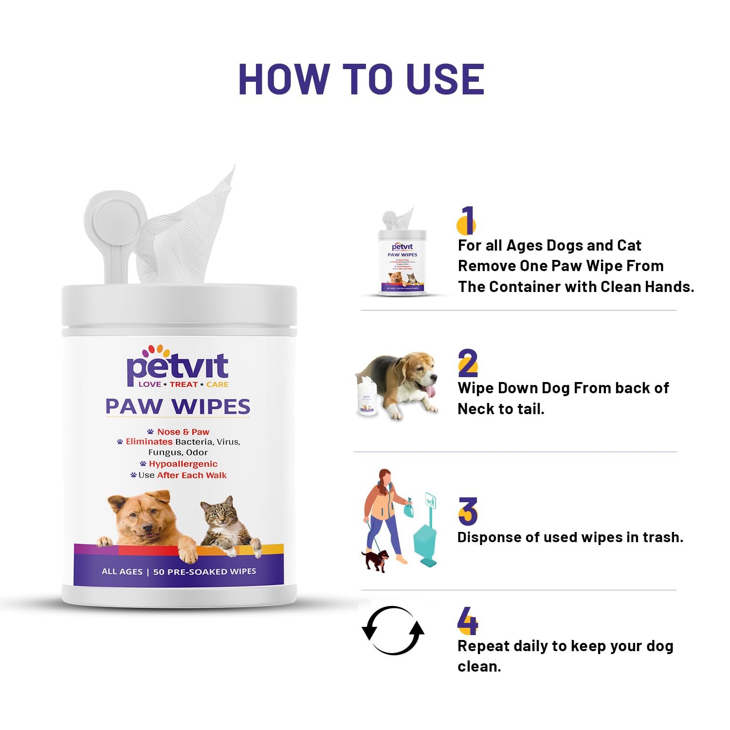 • VITAMIN ENRICHED: Each wipe is formulated to nourish your pet's coat, ensuring cleanliness while eliminating dirt, odor, and germs.