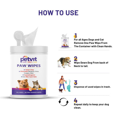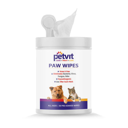 Petvit Nose and Paws Wipes | Gentle Cleaning for Healthy Skin, Mild Formula Designed for Sensitive Nose and Paws - 50 Wipes