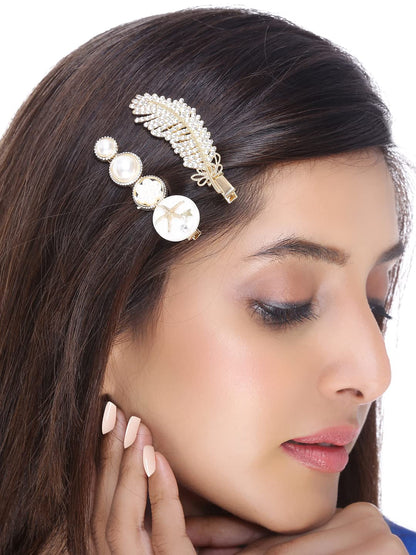 Introducing the Pack of 6 Hair Clips by Yellow Chimes, designed to complement your unique style with a blend of elegance and functionality. This hair accessory set features a mix of crystal and pearl embellishments, perfect for adding a sophisticated touch to any outfit. Measuring 8 CM in length and 2.5 CM in width, these clips are ideal for women and girls looking to elevate their hairstyles effortlessly.