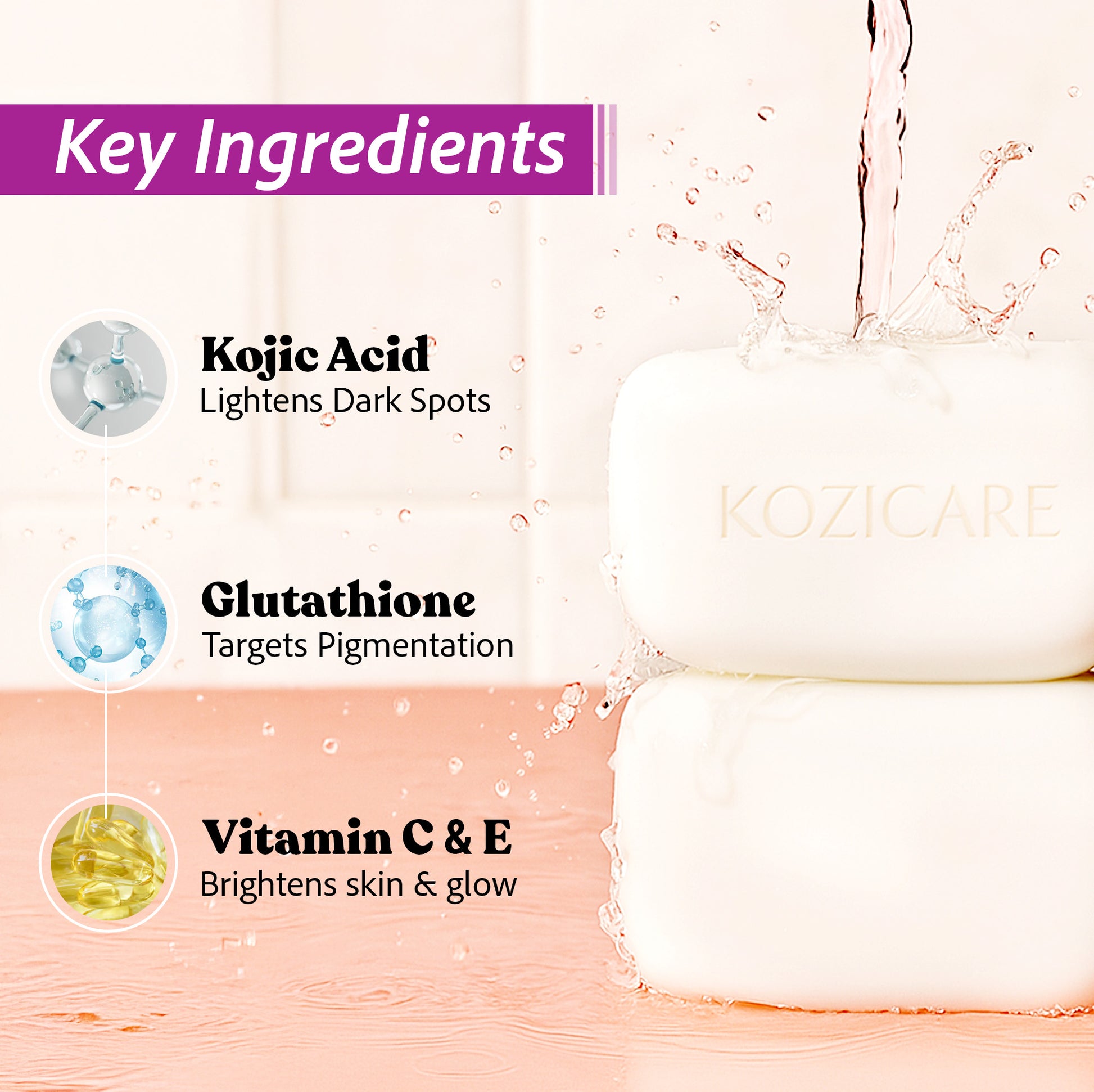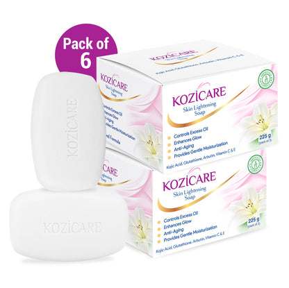 Kozicare Kojic Acid Soap & Glutathione Soap | Alpha Arbutin & Body Tan Removal Soap | Skin Whitening Soap | Bath Soap for Men & Women | Remove Dark Spots & Hyperpigmentation - Pack of 6