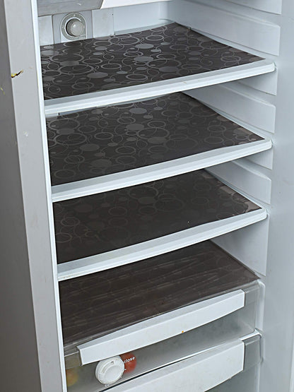 Introducing the Kuber Industries Multipurpose Refrigerator Drawer Mat, a must-have accessory for your refrigerator. This pack contains 6 versatile mats, each measuring 48 cm x 33 cm, crafted from waterproof PVC material. The mats are designed in an attractive Circle Design and come in a rich Brown color, perfect for complementing your kitchen décor.