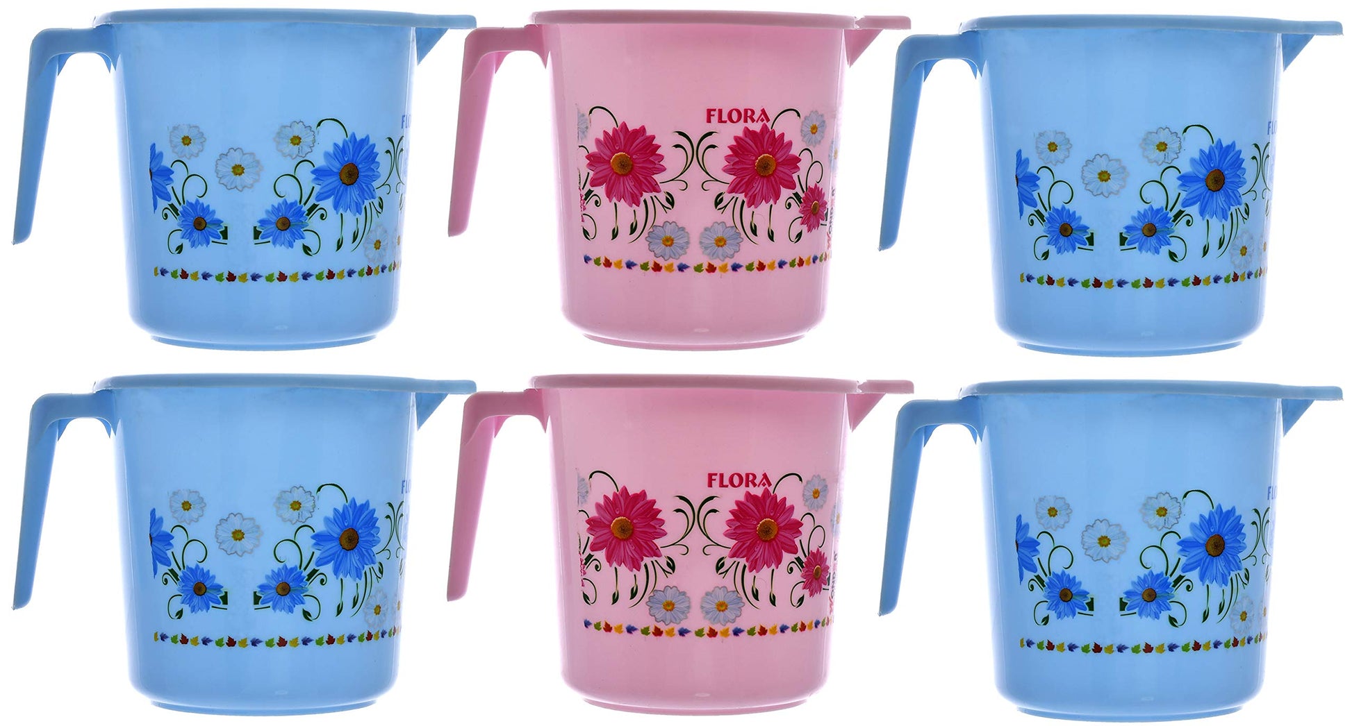 Kuber Industries Plastic Bathroom Mug - 6 Pieces, Blue & Pink, 1000ml