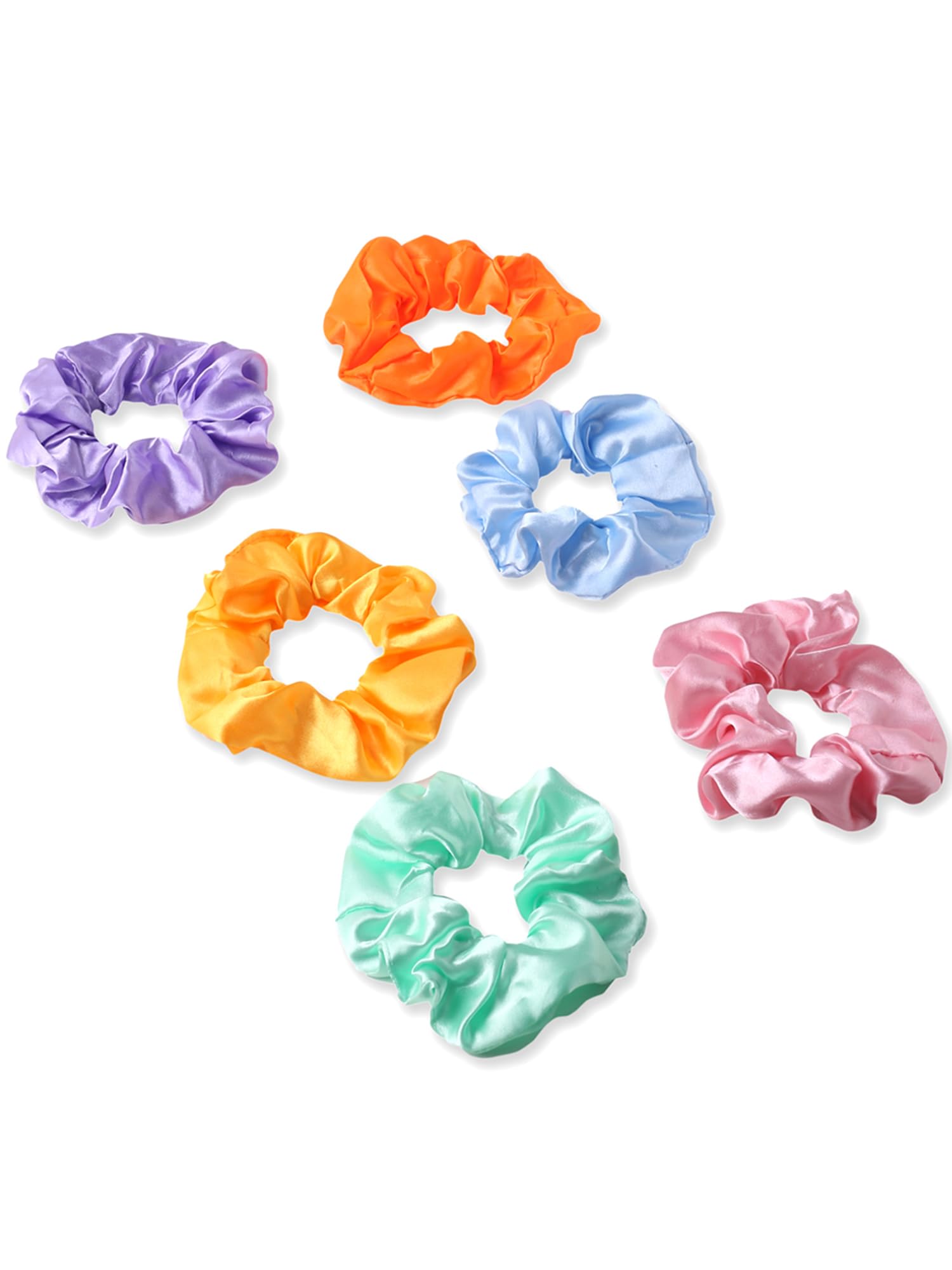 Introducing the Satin Scrunchies Set by Yellow Chimes, your go-to hair accessories for any occasion! This set includes 6 pastel-colored scrunchies, each measuring 6 cm in diameter and 3.5 cm in width. Made from high-quality fabric, these scrunchies are designed to be gentle on your hair while being durable for daily use. Perfect for women and girls, they make an ideal gift for friends and loved ones.