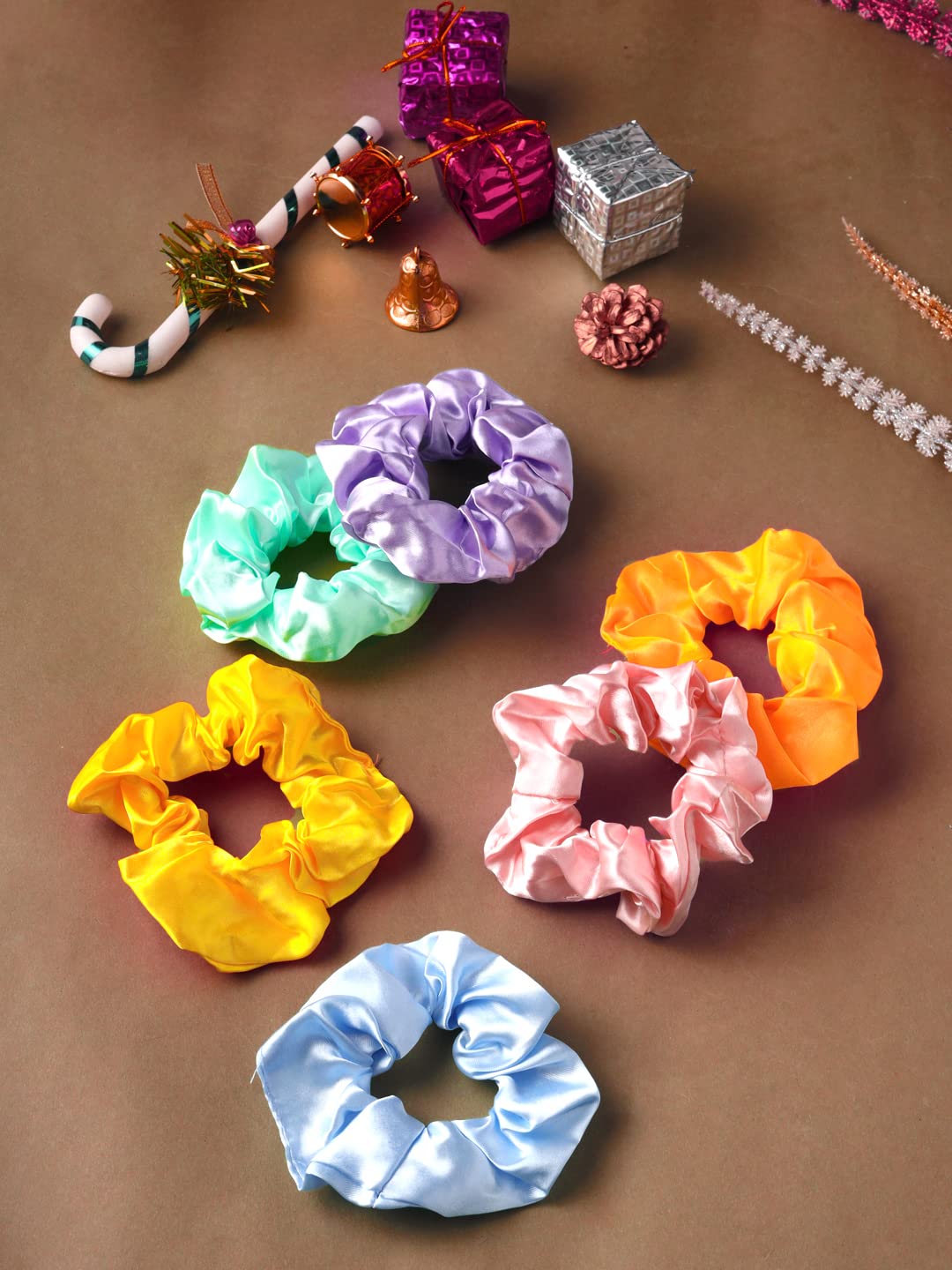 Yellow Chimes Scrunchies for Women Hair Accessories for Women 6 Pcs Satin Scrunchies Set Rubber Bands Multicolor Scrunchie Ponytail Holders Hair Ties for Women and Girls Gifts for Women and Girls