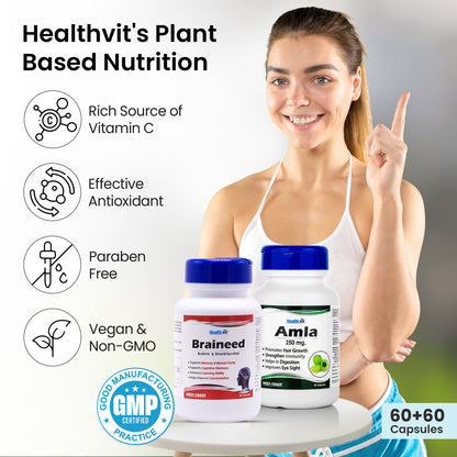 Introducing the Healthvit Organic Amla Capsules by Healthvit, a rich source of Vitamin C tailored to enhance your health and beauty. Each pack contains 60 capsules formulated with 250mg of organic Amla Powder, ensuring optimal immunity support and skin nourishment.