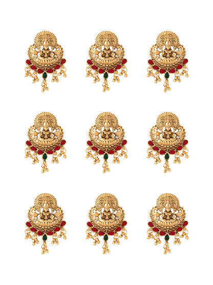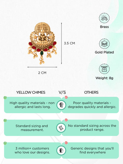 Introducing the Pack of 9 Gold-Plated Bridal Wedding Jadai Billai by Yellow Chimes, your ultimate hair accessory set for enhancing traditional hairstyles. Crafted from stunning gold-plated brass, this exquisite combo features a beautiful golden peacock design, making it an essential choice for bharatanatyam hair accessories and South Indian hair jewellery. Each pin measures approximately 3.5 CM x 2 CM and weighs just 35 grams, allowing for a comfortable yet secure fit for all hair types.