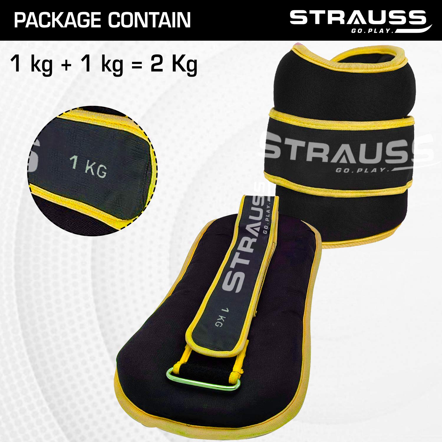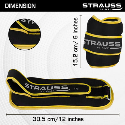Strauss Ankle Weights for Exercise & Fitness|Adjustable Round Belt Design|Leg Weights for Strength Training,Walking Running, Jogging,Exercise & Gym Workout|Comfortable & Durable|1Kg(Each)(Yellow Pair)