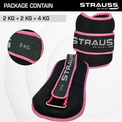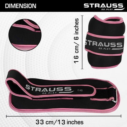 Strauss Ankle Weights for Exercise & Fitness |Adjustable Round Belt Design |Leg Weights for Strength Training,Walking Running, Jogging,Exercise & Gym Workout| Comfortable & Durable | (2 Kg Pink Pair)
