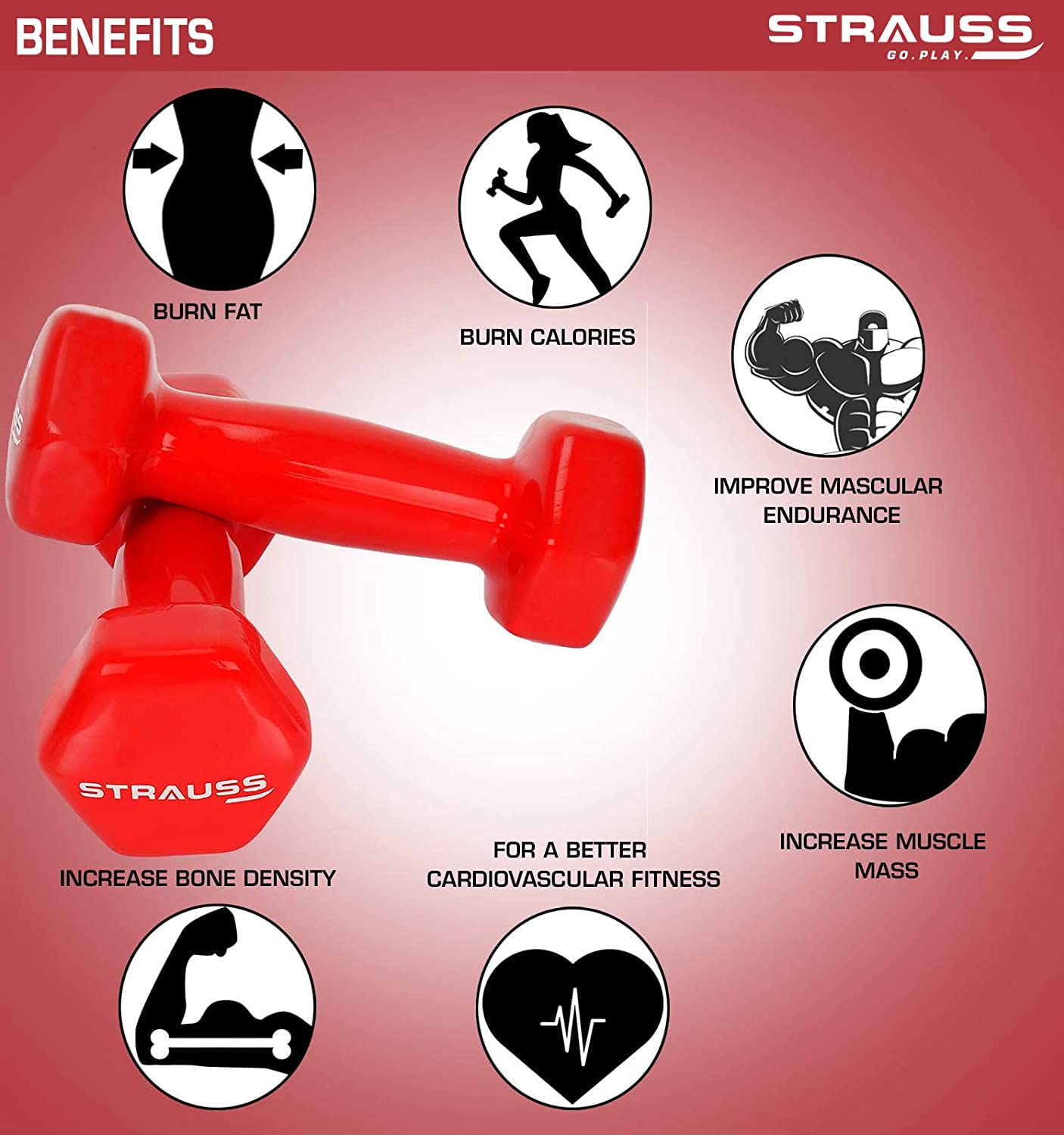 Strauss Unisex Vinyl Dumbbells Weight for Men & Women | 2Kg (Each)| 4Kg (Pair) | Ideal for Home Workout and Gym Exercises (Red)