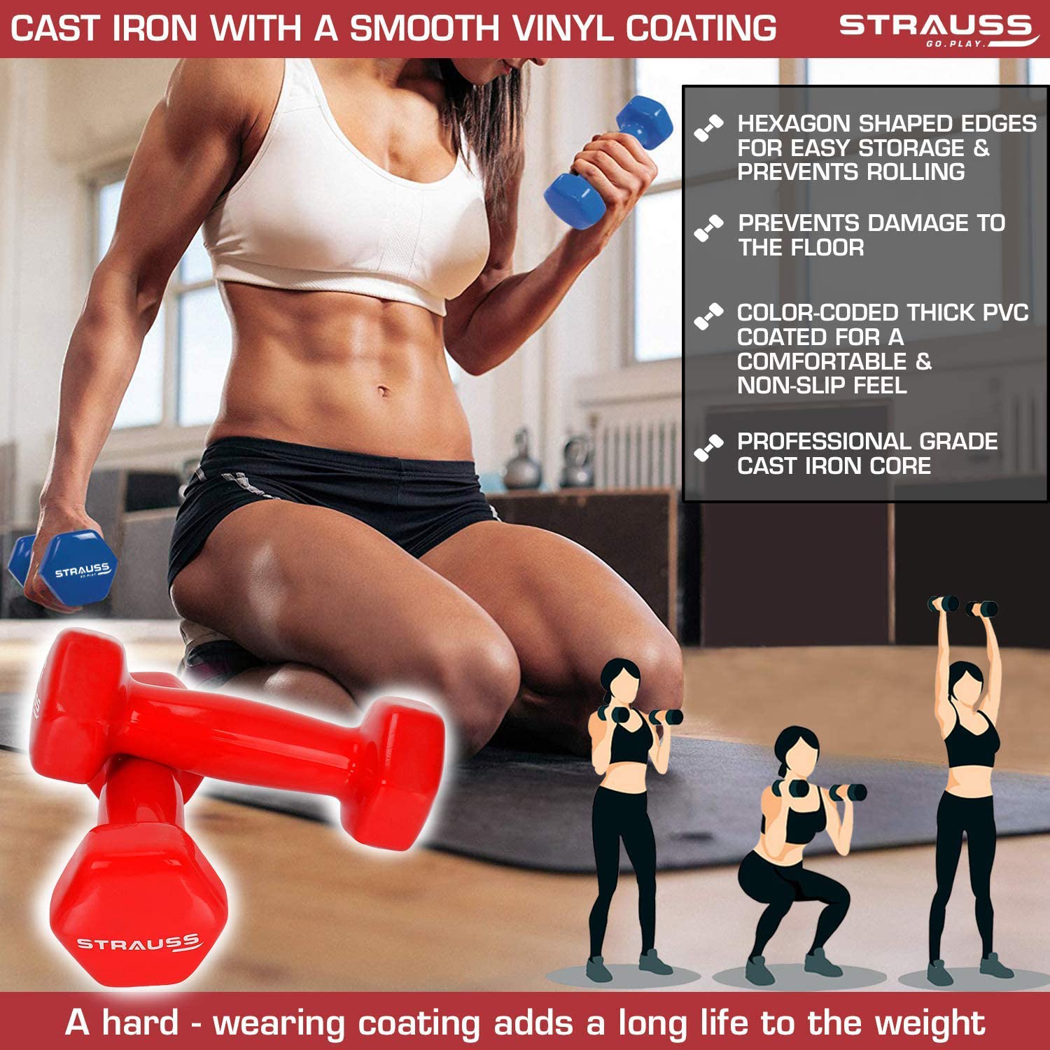 Whether you’re a beginner aiming to get fit or a seasoned athlete looking to maintain muscle tone, the Strauss Sports Vinyl Dumbbells are perfectly suited to all levels of fitness enthusiasts. Grab your pair today and take the first step towards a healthier you!