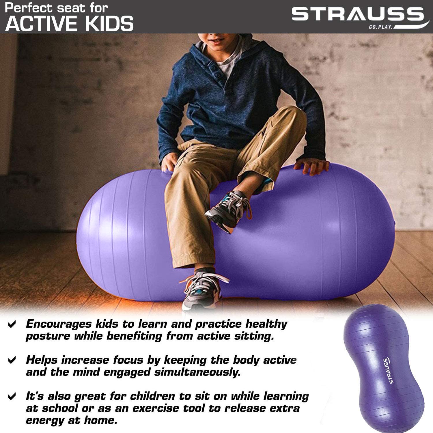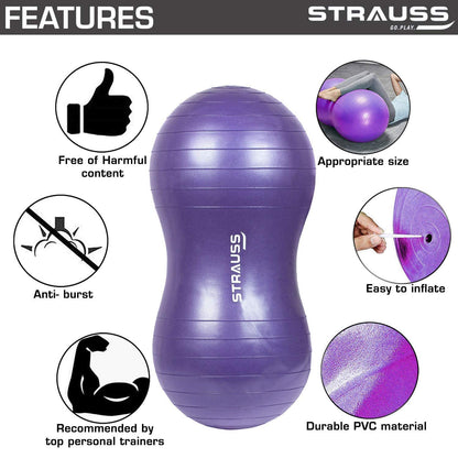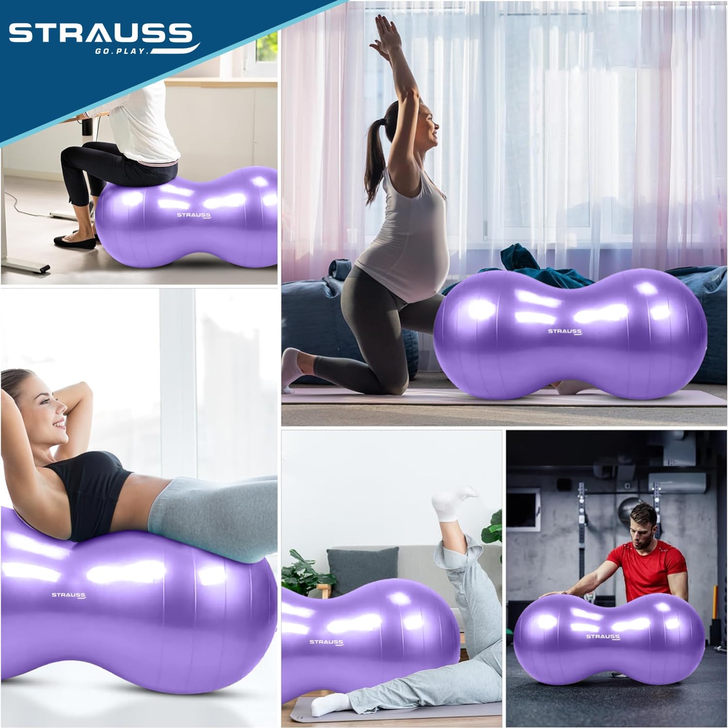 STRAUSS Rubber Anti-Burst Gym Ball, Peanut Shape, 95X45 cm, (Purple)