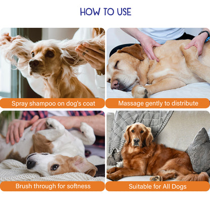 Perfect for use at home, in the car, or even while shopping, this dry shampoo offers convenience and effectiveness whenever you need it. Simply spray it on your pet's fur, massage lightly, and wipe away the dirt with a towel or tissue. It’s great for softening your dog's hair and providing a shiny, healthy look.
