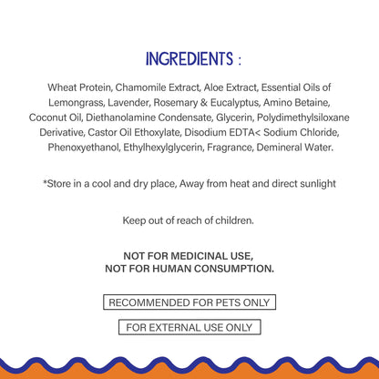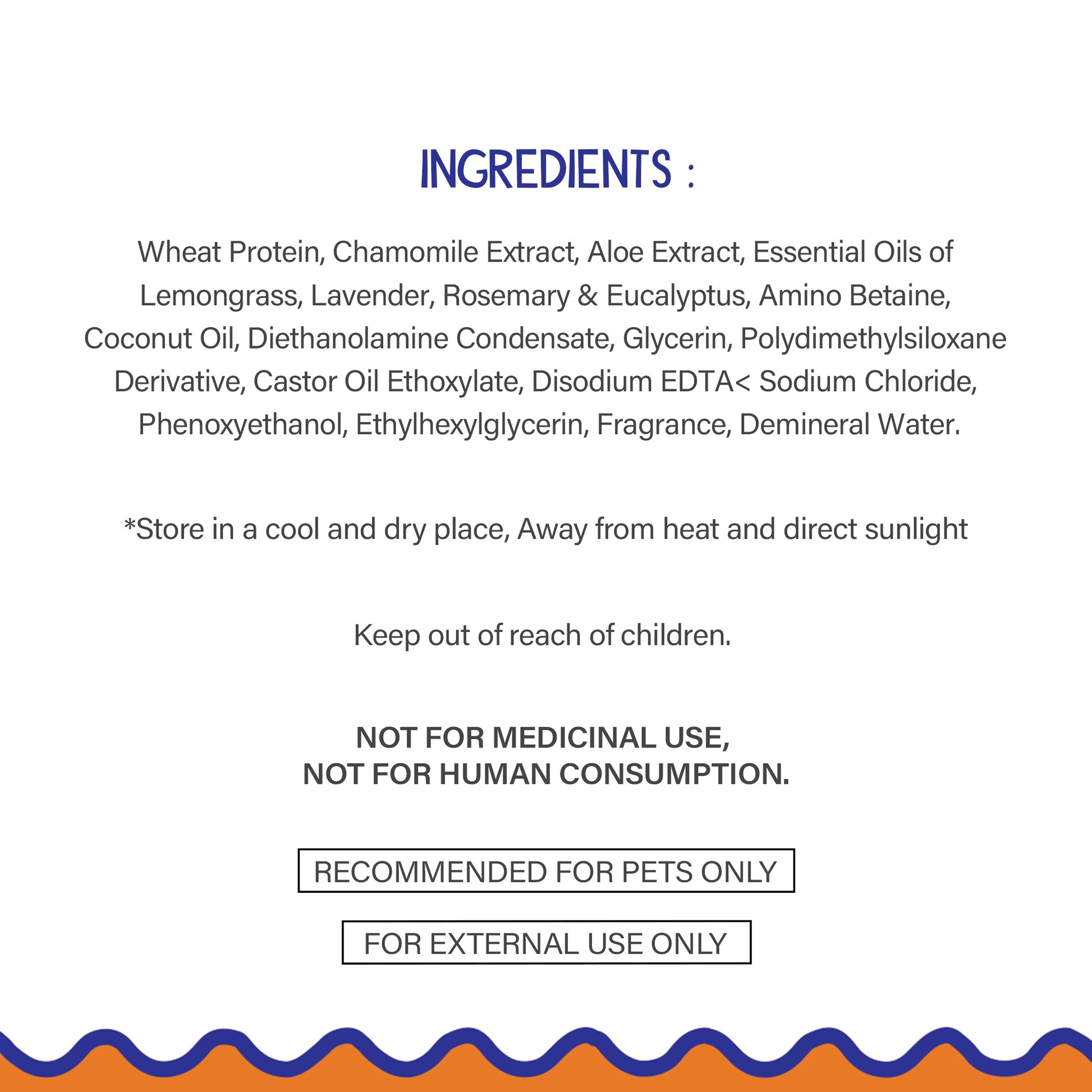 Plant Based Natural Waterless Spray Shampoo with Wheat Protein, Lemongrass Oil, Lavender, Rosemary, Eucalyptus, Coconut Oil, Castor Oil All Breed Dog & Cat - 200ml