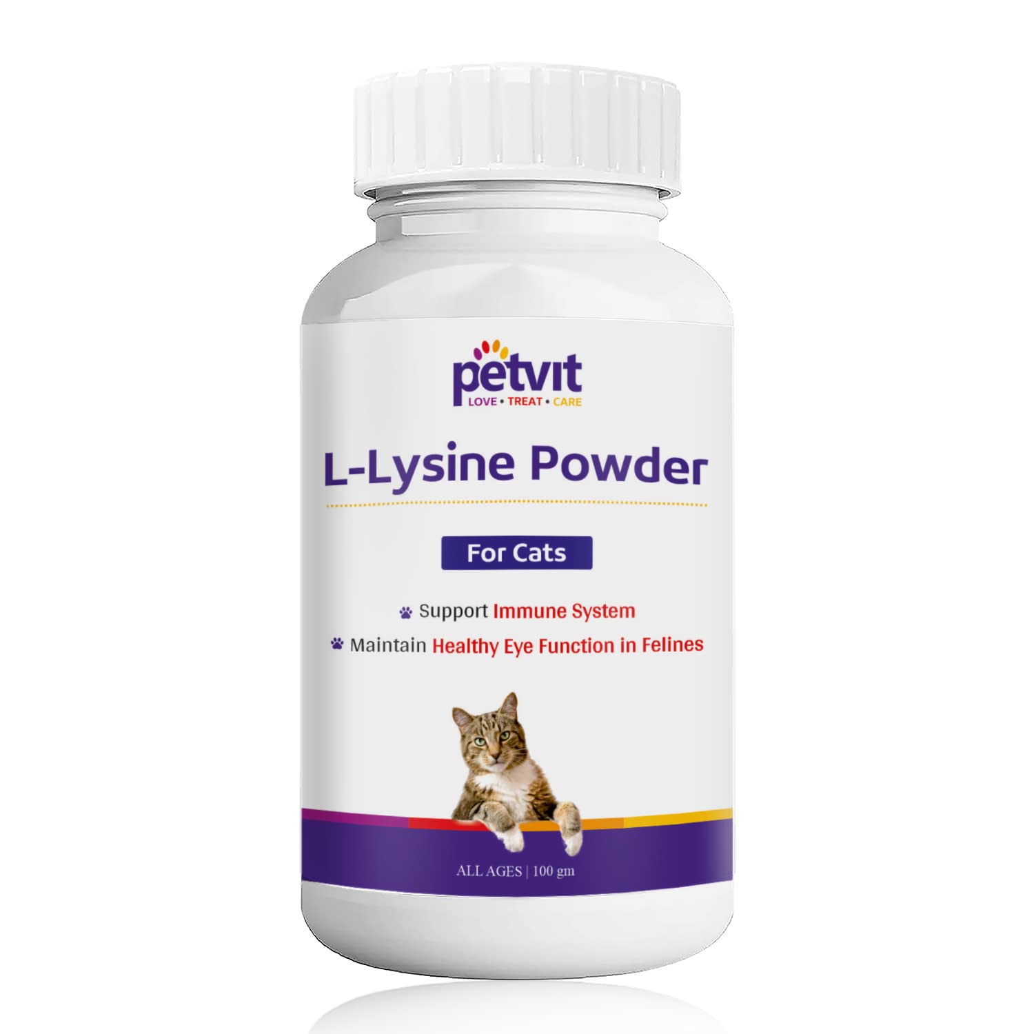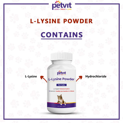 Petvit L-Lysine Powder for Cats | Helps Support Eye Health, Immune System for Cats and Kittens | for Healthy Eye Function | Powder, Formulated for Cats | for All Age Group of Cats – 100 GM
