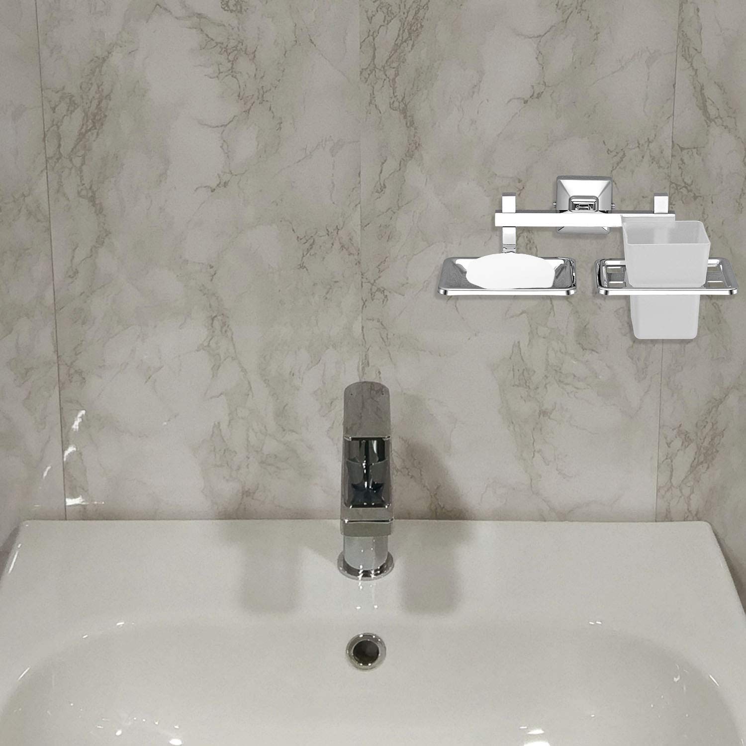 304 Grade Stainless Steel 2in1 Soap Holder with Tumbler Holder/Bathroom Accessories - Pack of 1, Squaro (Chrome)
