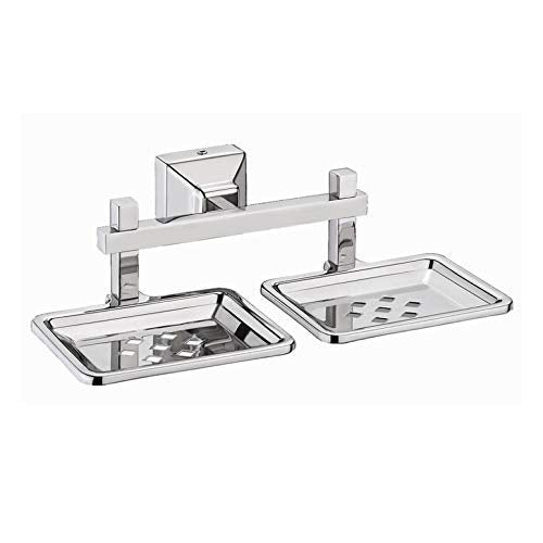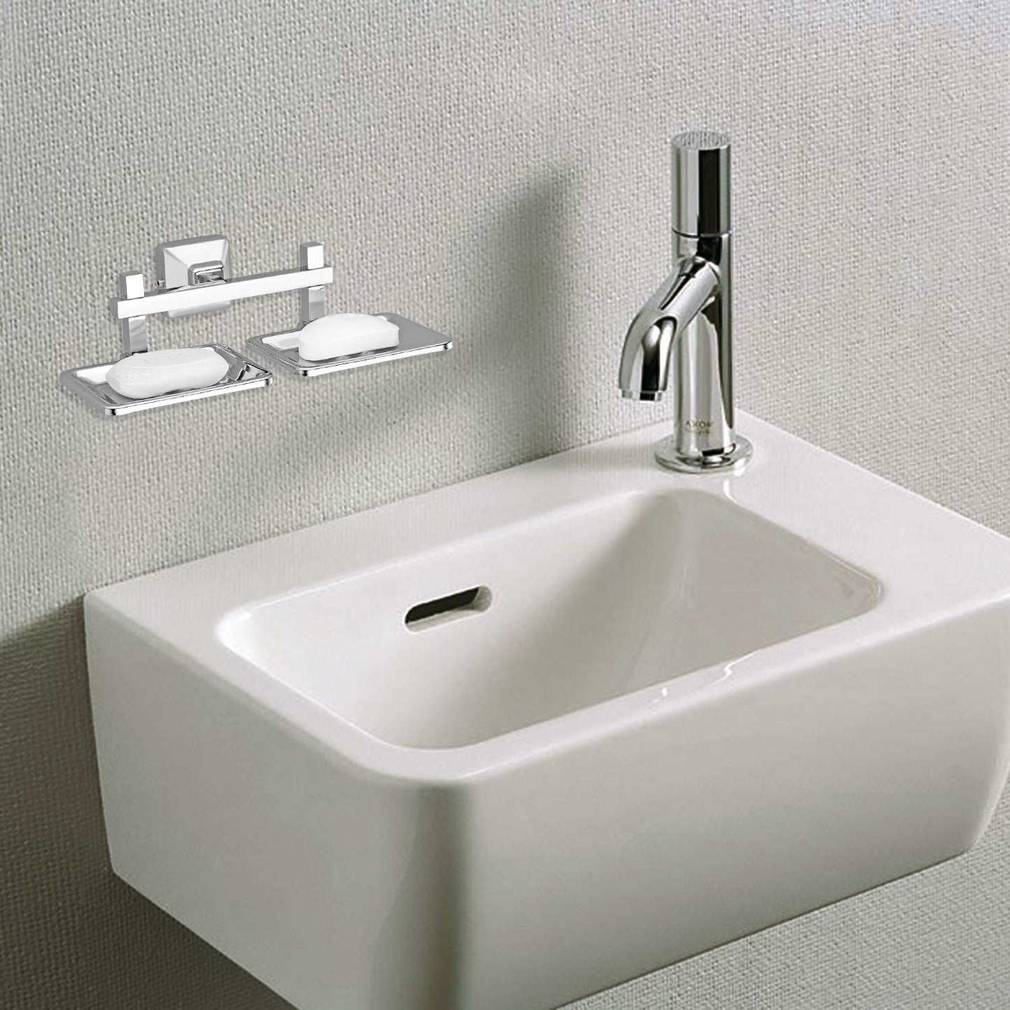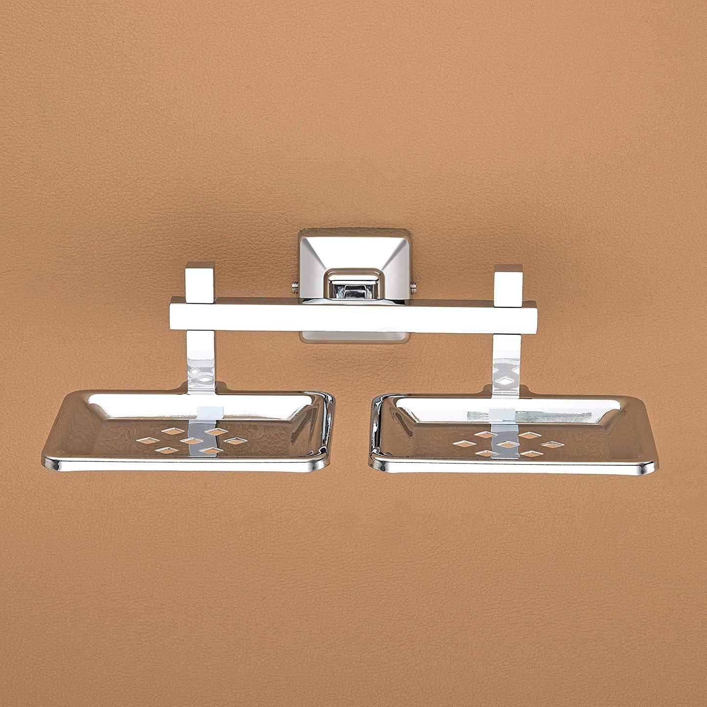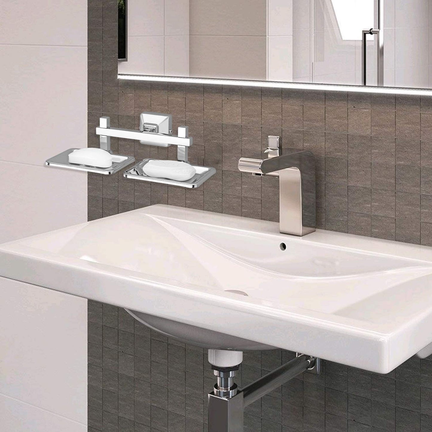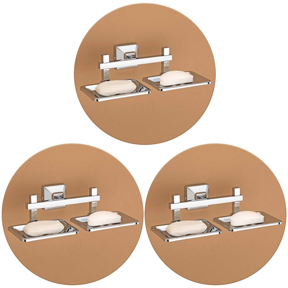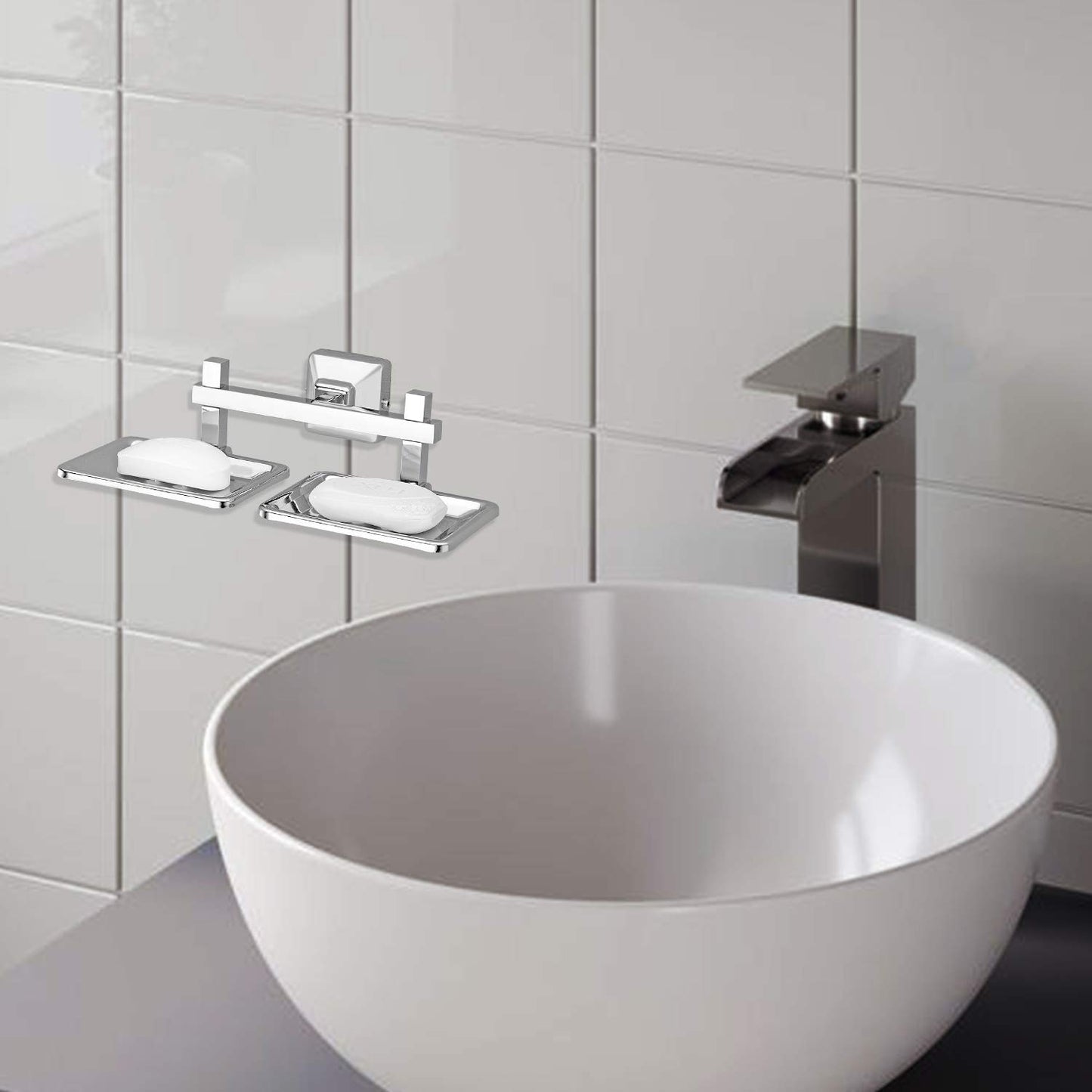 304 Grade Stainless Steel Dual Soap Holder for Bathroom/Double Soap Dish/Soap Stand/Soap case/Bathroom Accessories - Pack of 3, Squaro (Chrome)