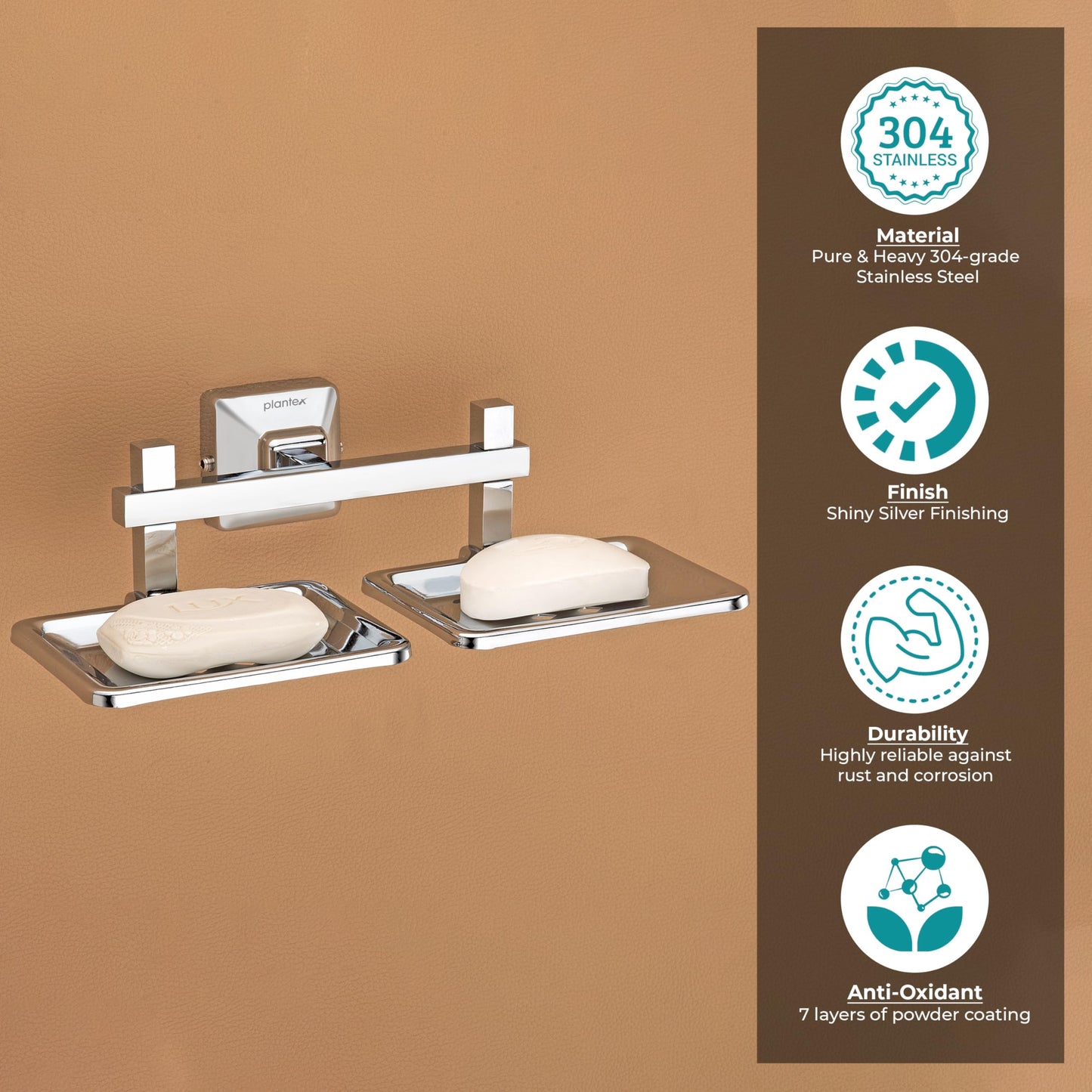 Upgrade your bathroom accessories today with the Plantex 304 Grade Stainless Steel Dual Soap Holder and experience the perfect combination of functionality and elegance.