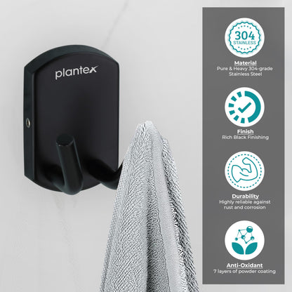 Plantex 304 Grade Stainless Steel Robe Hook/Cloth-Towel Hanger/Door Hanger-Hook/Bathroom Accessories - Pack of 1 (Parv-Black)
