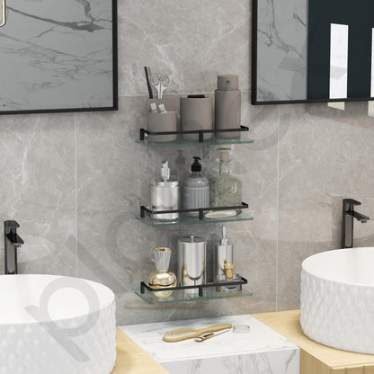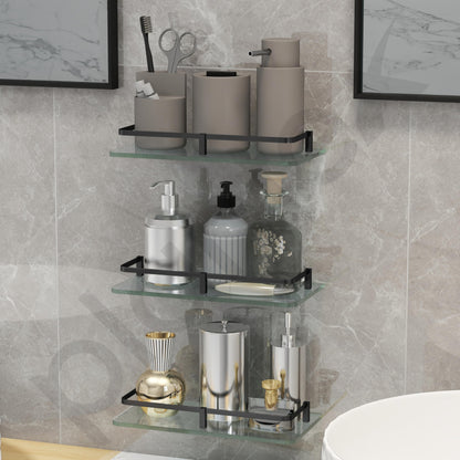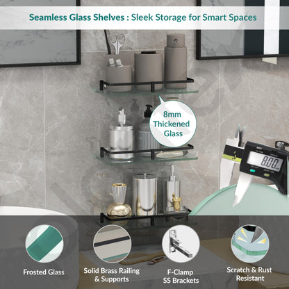 - Durability at Its Best: Crafted from 8 mm thick frosted glass and solid brass clamps, these shelves are designed for long-lasting use. The black 7-layer powder coating provides a scratch-resistant and rust-proof finish, ensuring they look great for years to come.