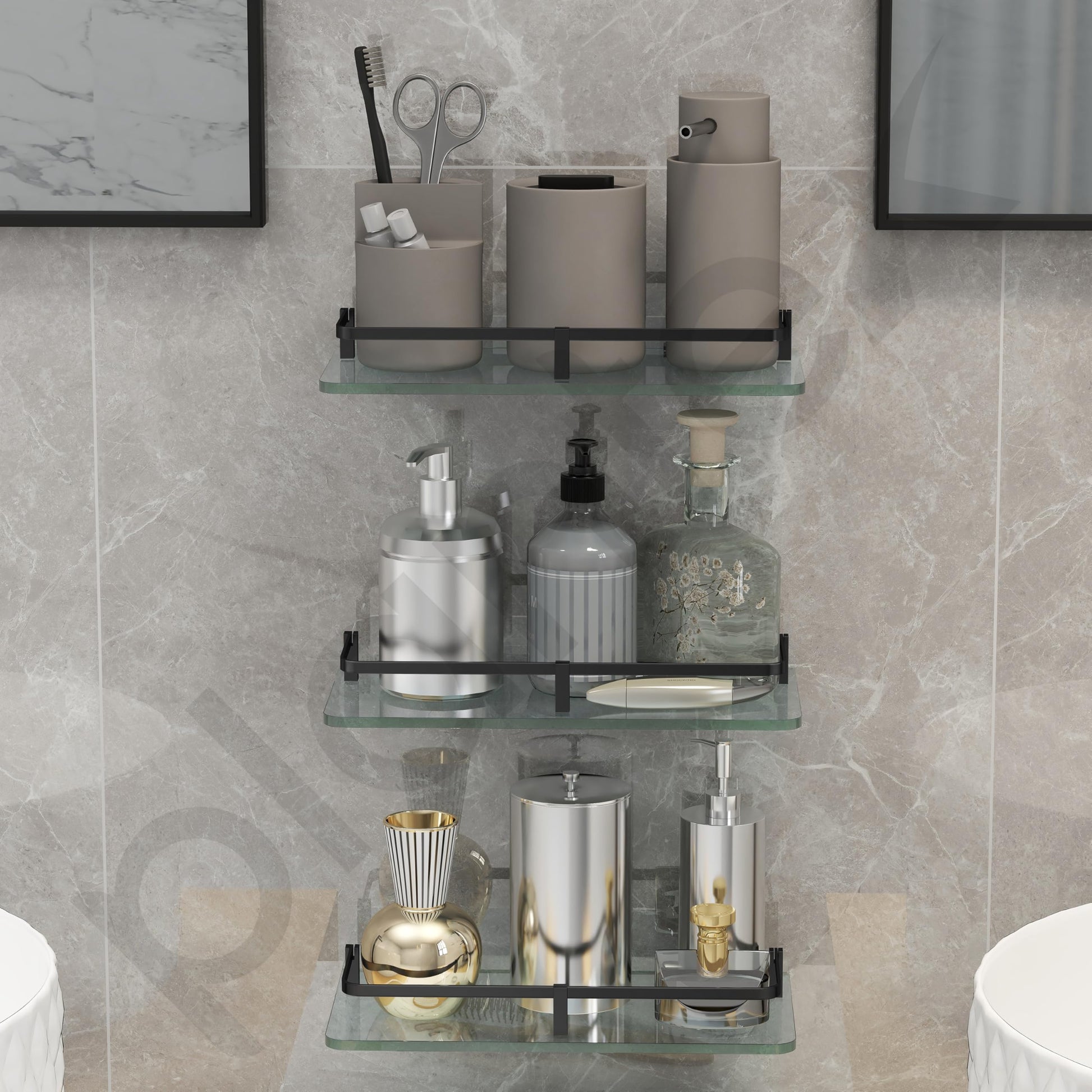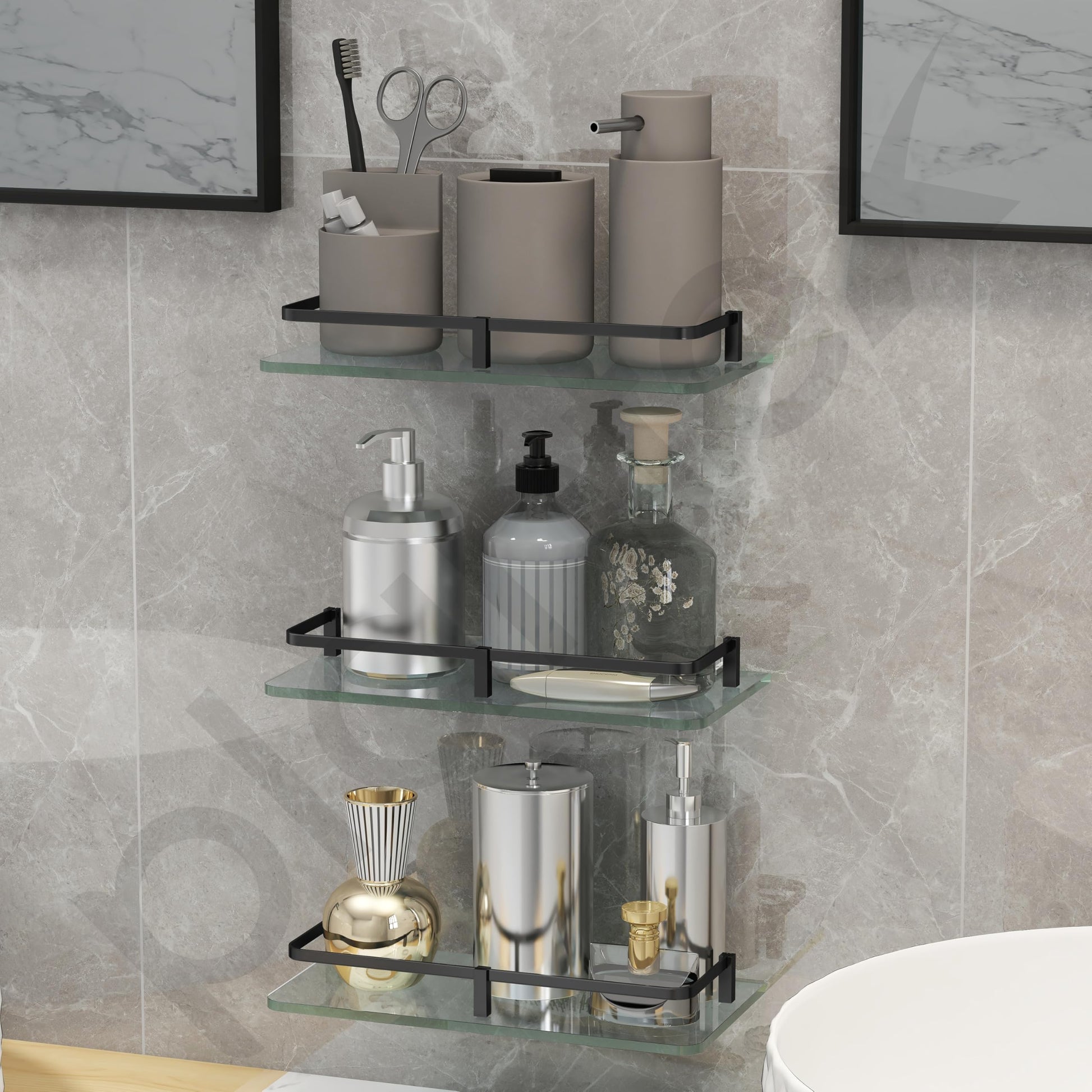- Convenient Packaging: This set includes three frosted glass shelves, complete with all necessary wall mounting materials, for a quick and easy installation.