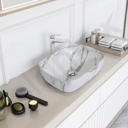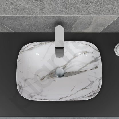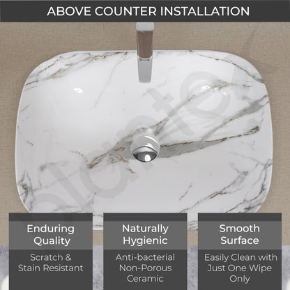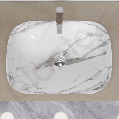 Ceramic Basin - Glossy Marble Finish | 1 Wash Basin | Size: 45.5x32.5x14 cm | White & Grey