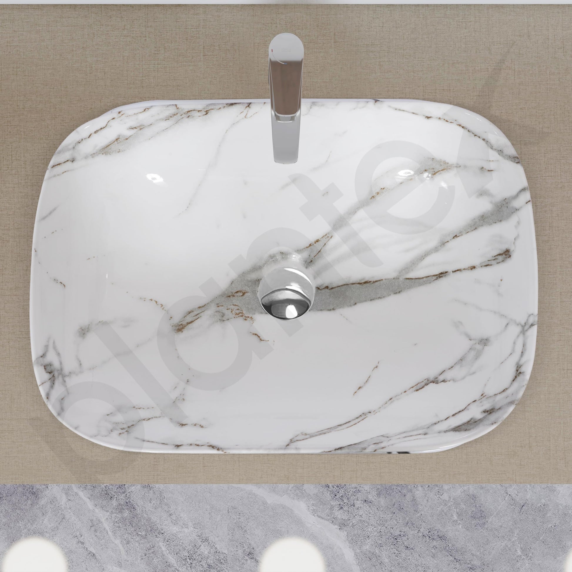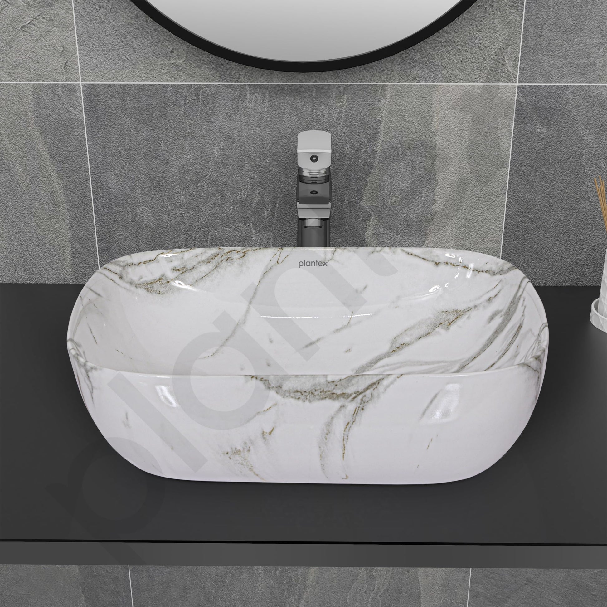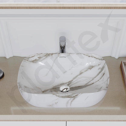 Plantex Ceramic Basin - Glossy Marble Finish | 1 Wash Basin | Size: 45.5x32.5x14 cm | White & Grey