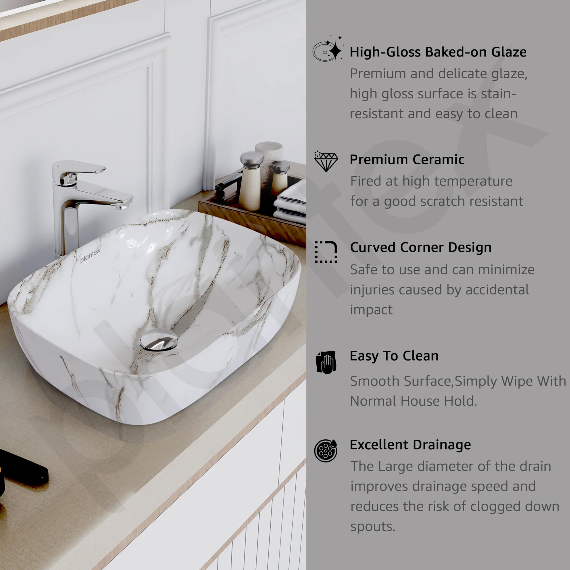 • Durable & Stylish Addition: Crafted from ceramic, this basin is stain and scratch-resistant, ensuring it maintains its luster for years to come.