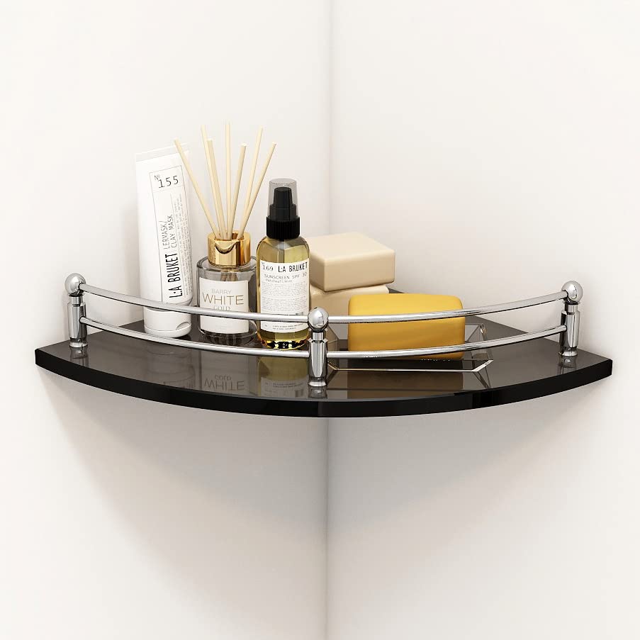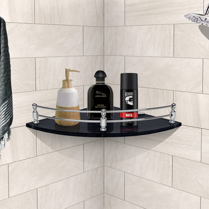 Heavy Duty Glass Shelf for Bathroom/Kitchen Corner Shelf Wall Mounted - Bathroom Accessories (Black - 9x9 Inches - Pack of 1)