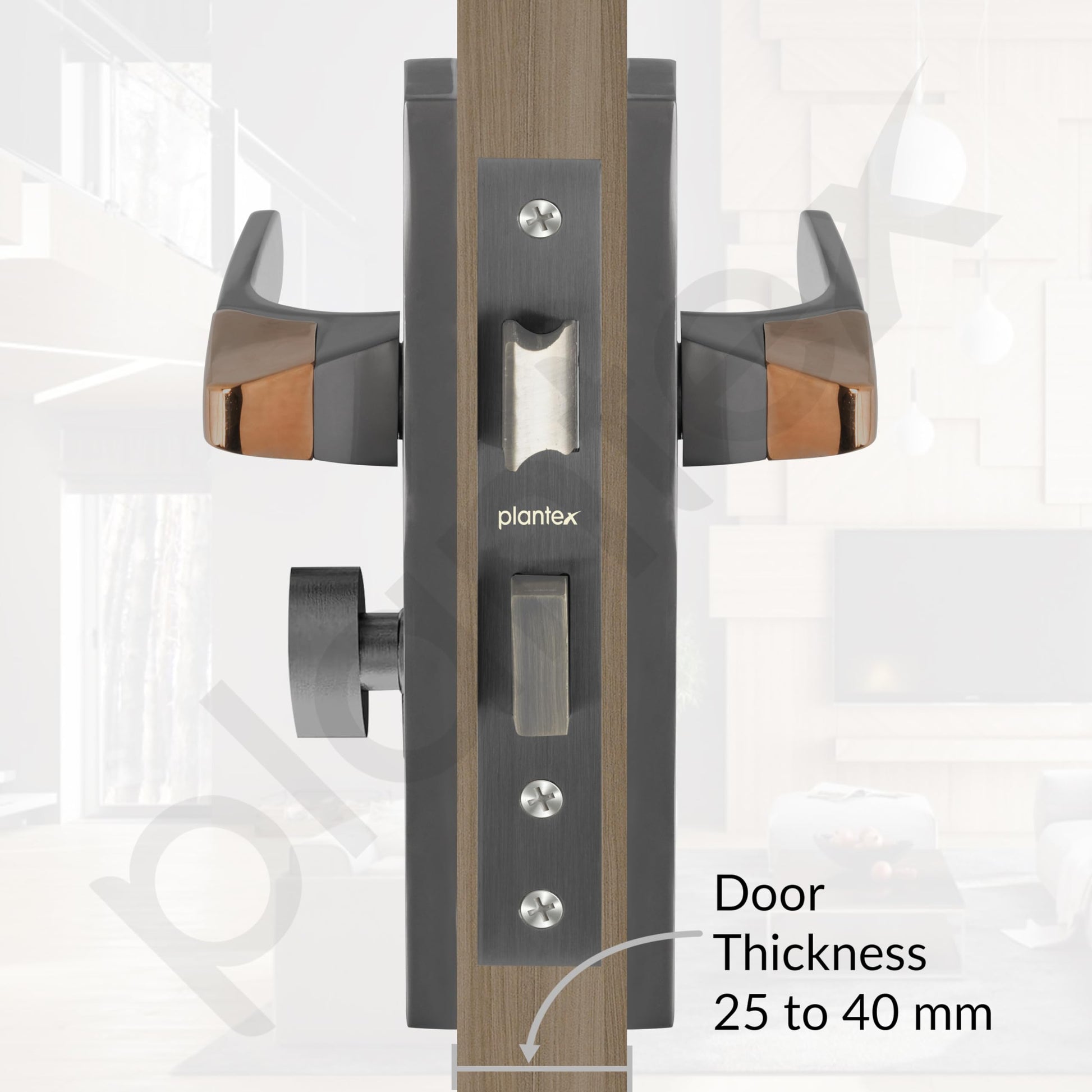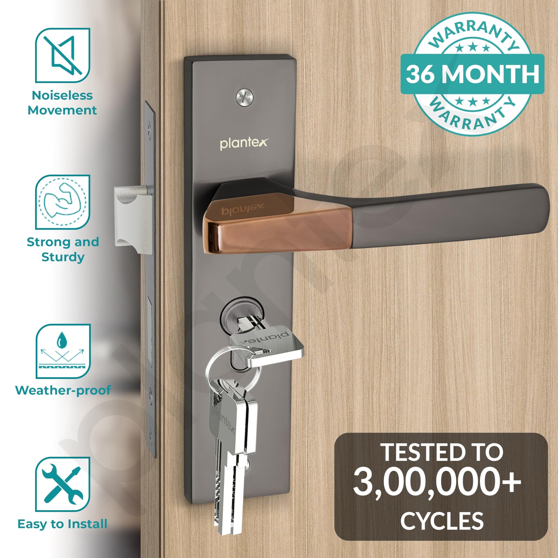 Plantex Heavy-Duty Door Lock Set - Main Door Lock Handle Set/ 6-Lever Lock Mechanism with 3 Years of Warranty/Mortise Lock with 3 Keys, Brass Lock Body & Cylinder (8114 - Satin Black & PVD Choco)
