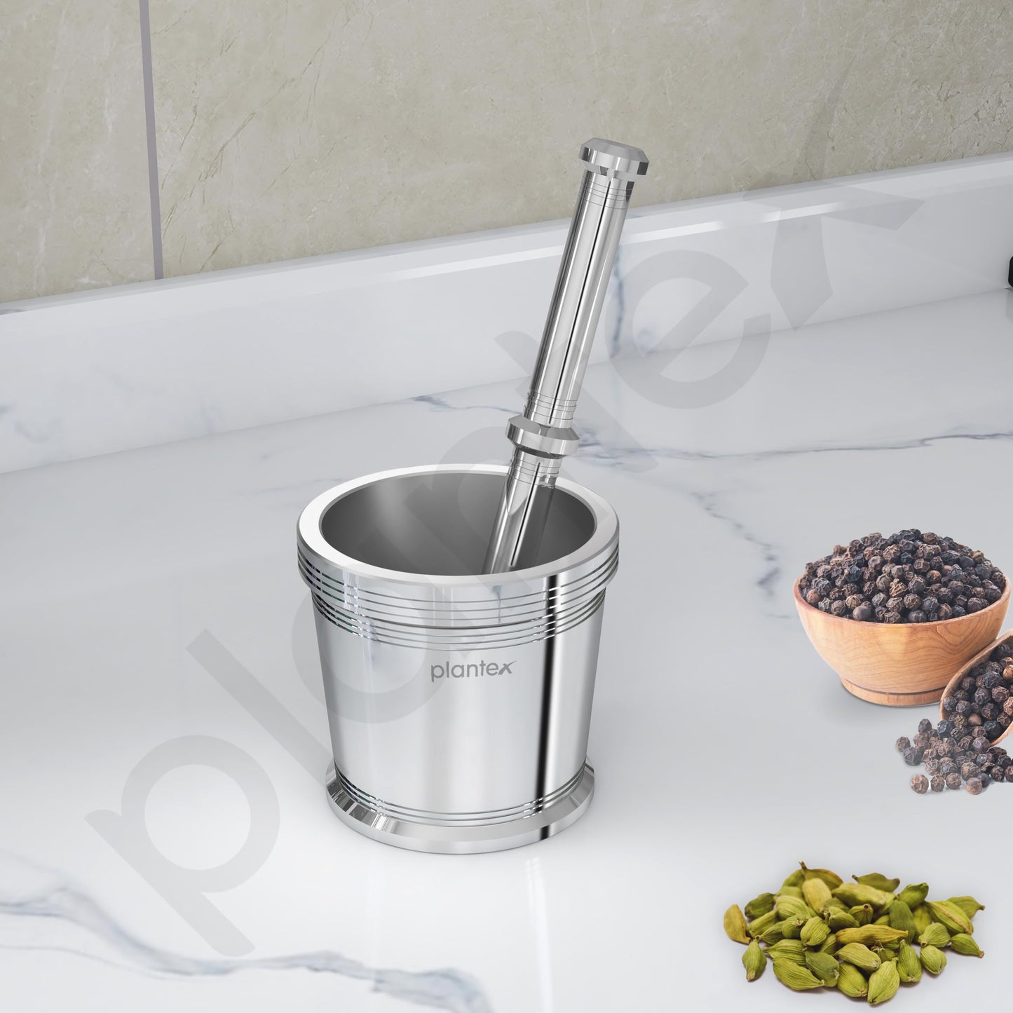The Plantex Heavy Stainless Steel Mortar & Pestle Set is the ultimate kitchen companion for spice lovers and culinary enthusiasts. Crafted from high-grade stainless steel, this set combines durability with functionality, making it an essential tool for any kitchen.