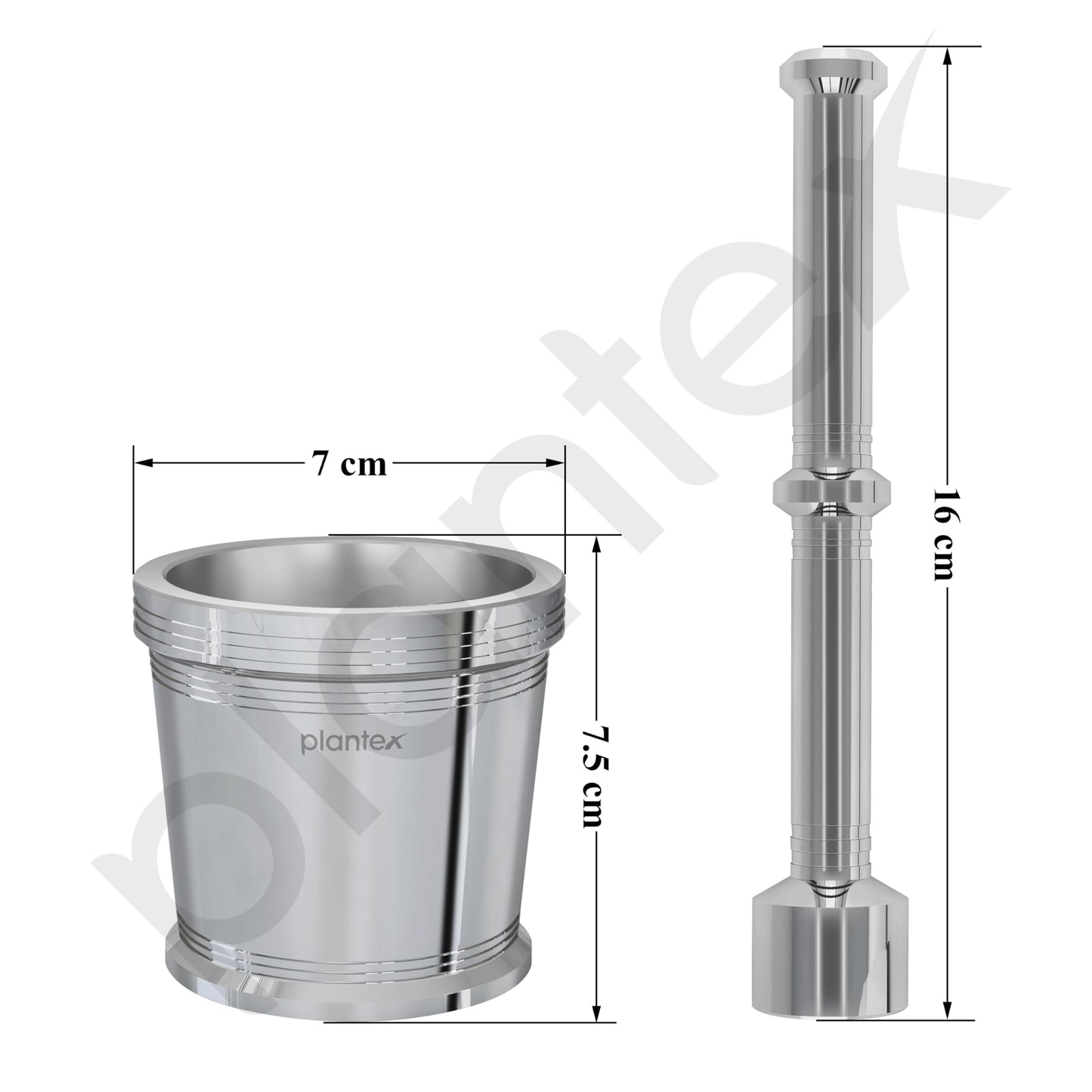 Plantex Heavy Stainless Steel Mortar & Pestle Set|Spice Mixer|Khalbatta|Khal|Okli for Kitchen - Size 2(Dia: 7.5, H: 7 cm)