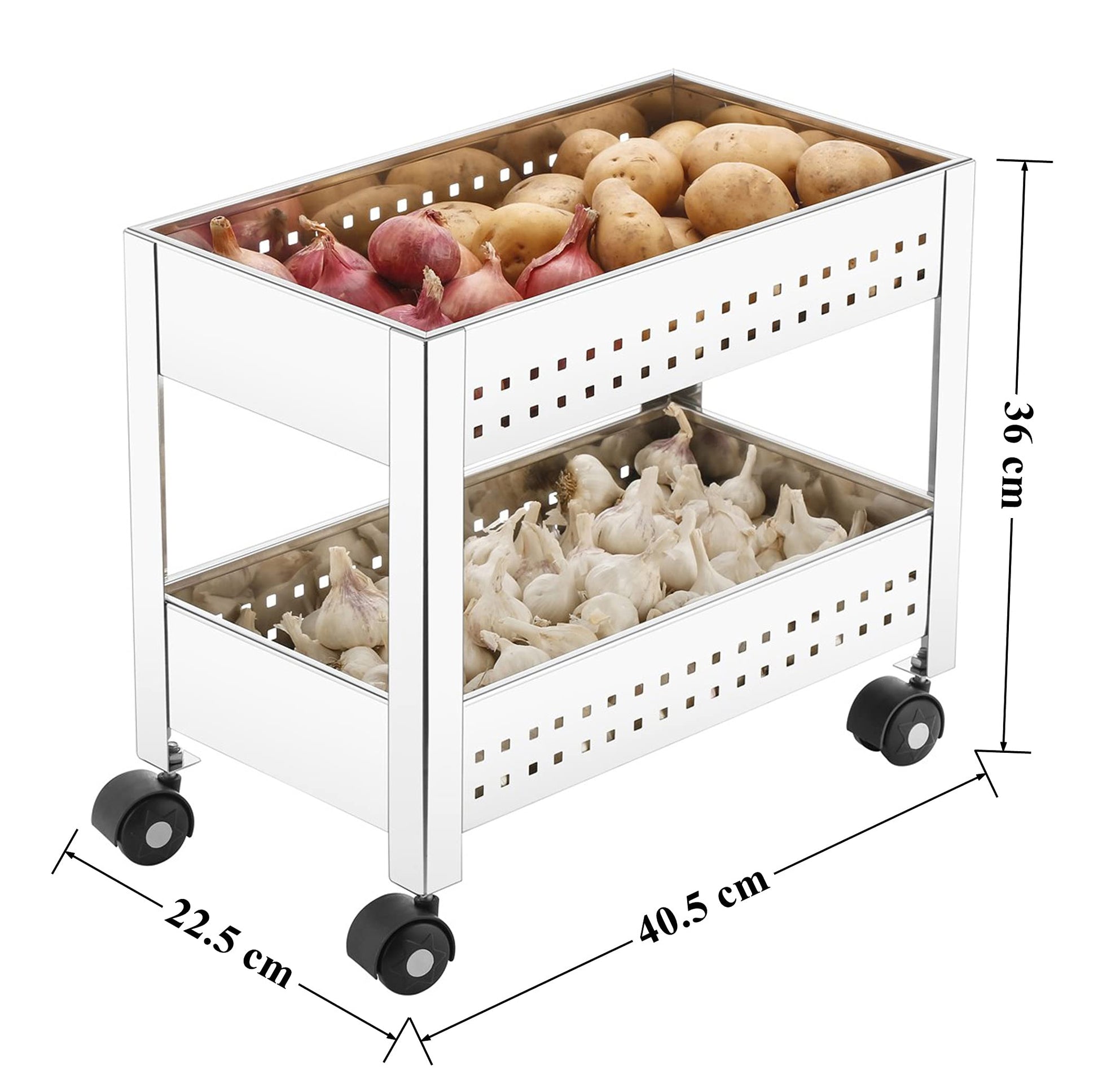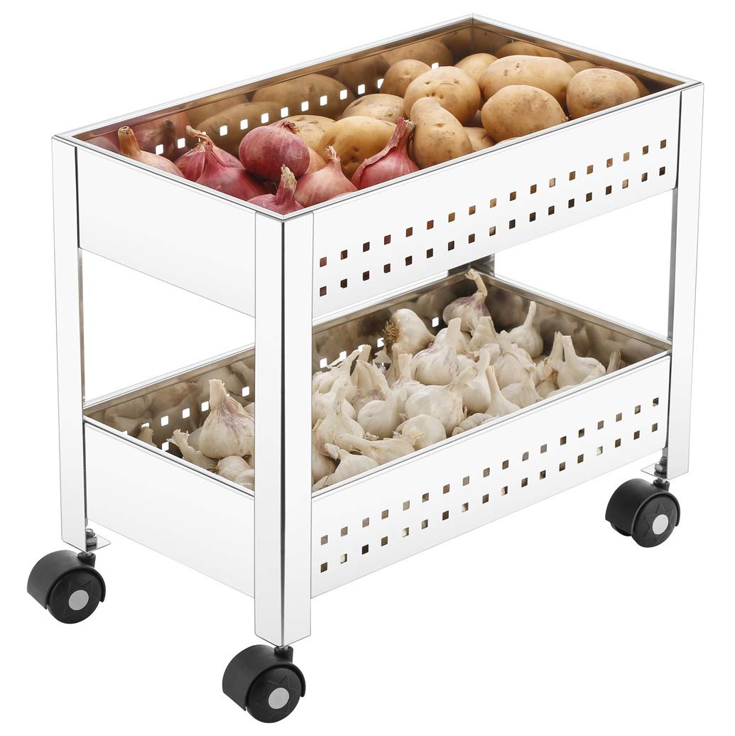 Plantex Kitchen Trolley/Vegetables Basket for Kitchen/Fruit Stand for Kitchen/Stainless Steel Vegetable Stand/Vegetable Rack for Kitchen/Trolley Stand (Silver)