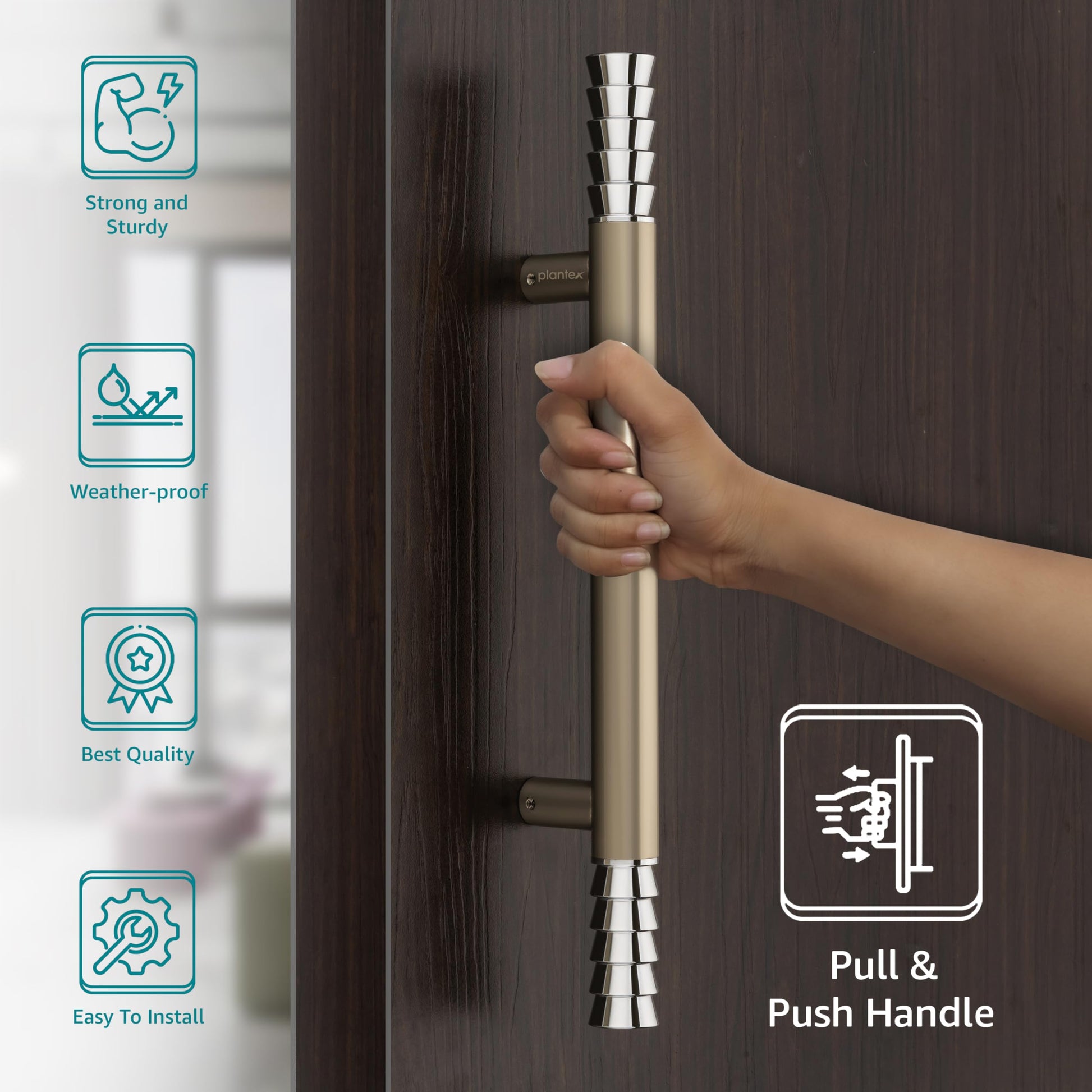 The Plantex handle is designed for both pull and push operations, enhancing your entryway experience. Its versatility makes it suitable for various applications, including:
