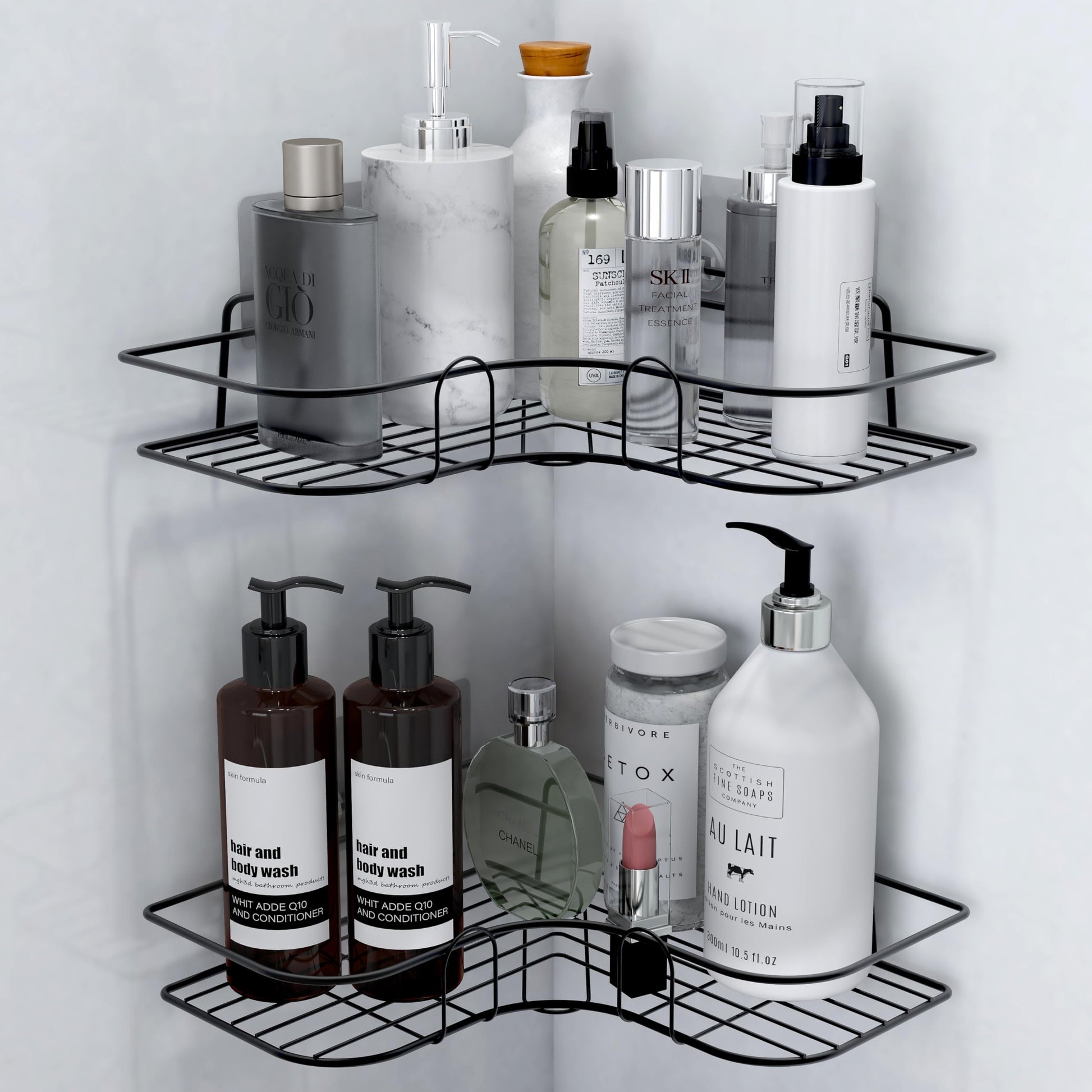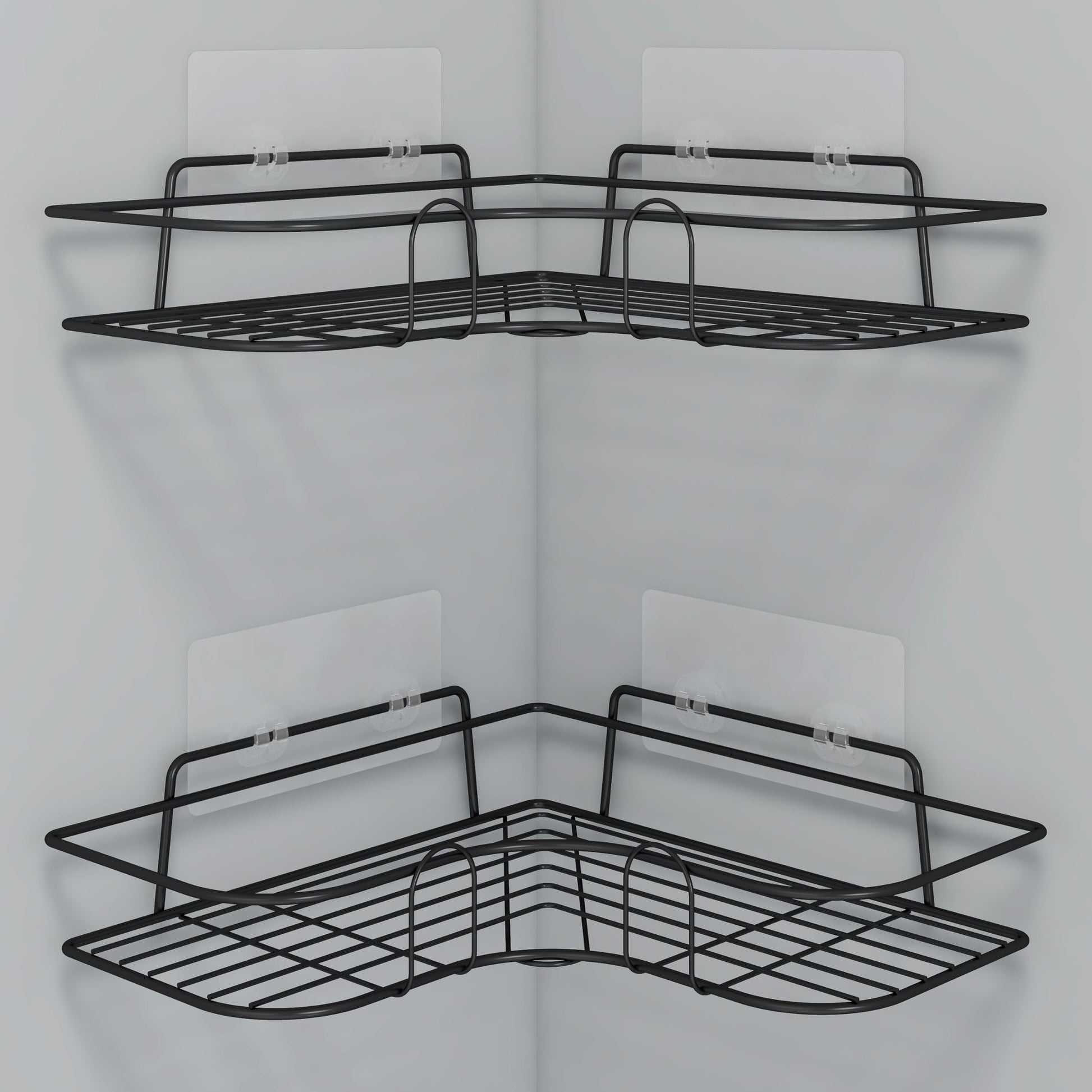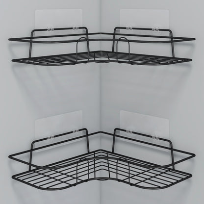 Self Adhesive Corner Shelf for Bathroom/Adhesive Shelf for Kitchen with Magic Sticker/Bathroom Organizer Without Drill (GI Metal, Black) - Pack of 2
