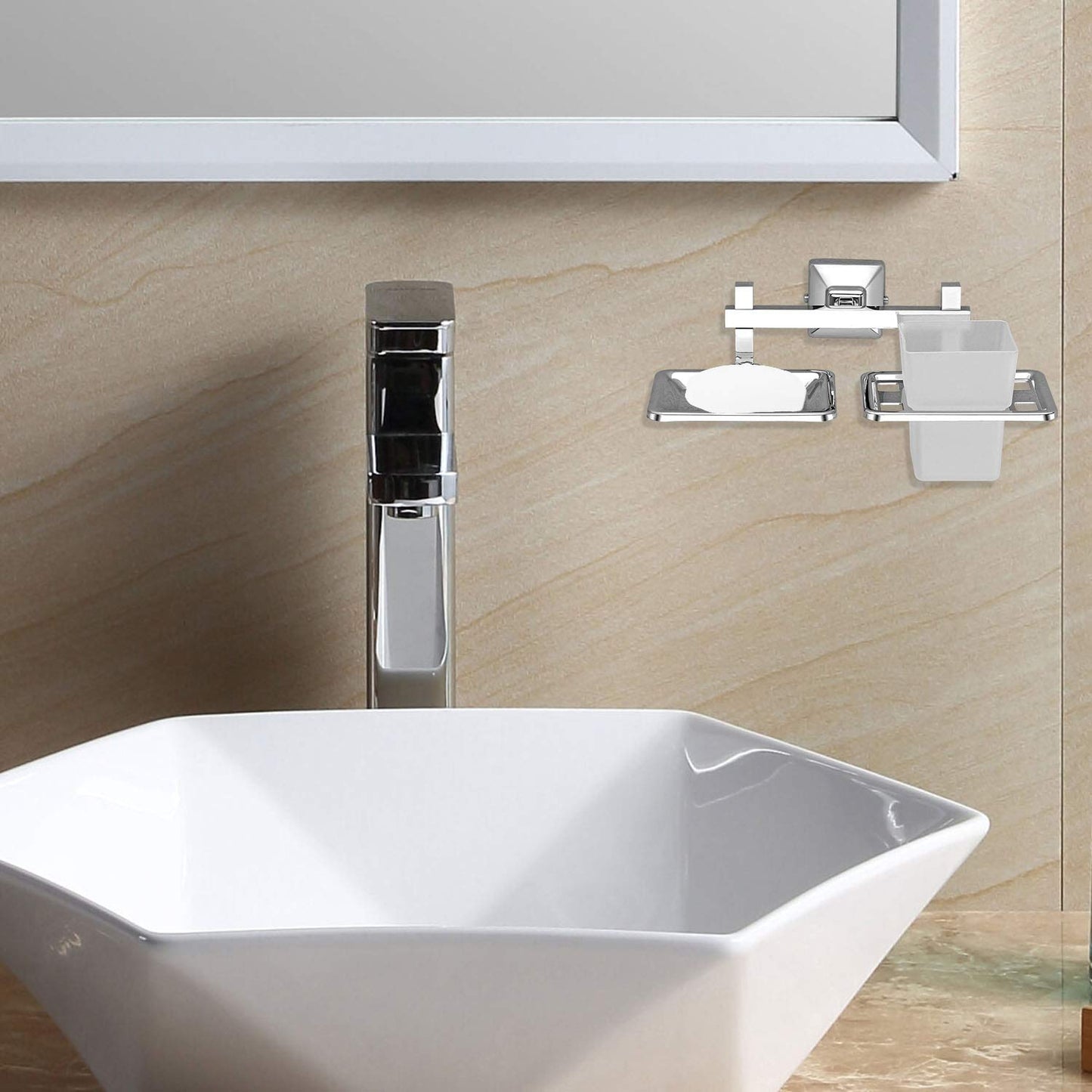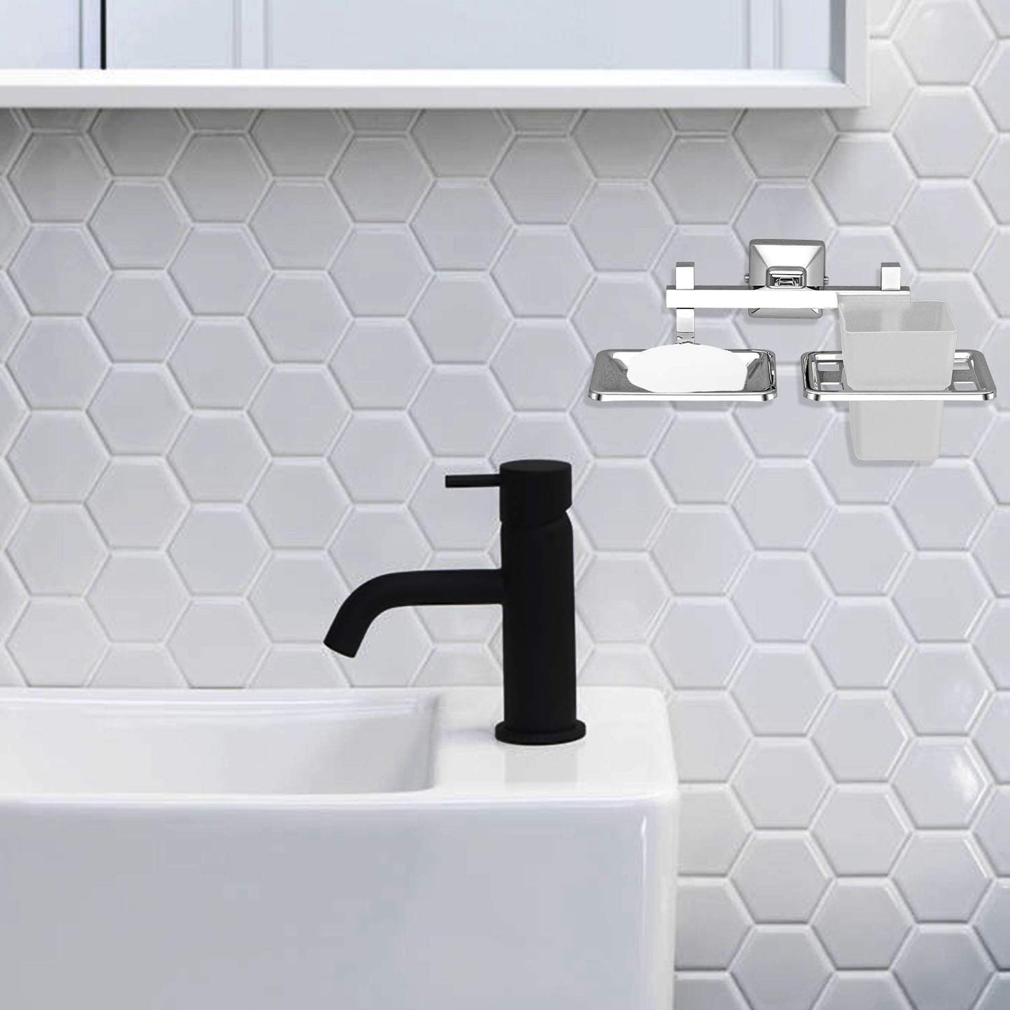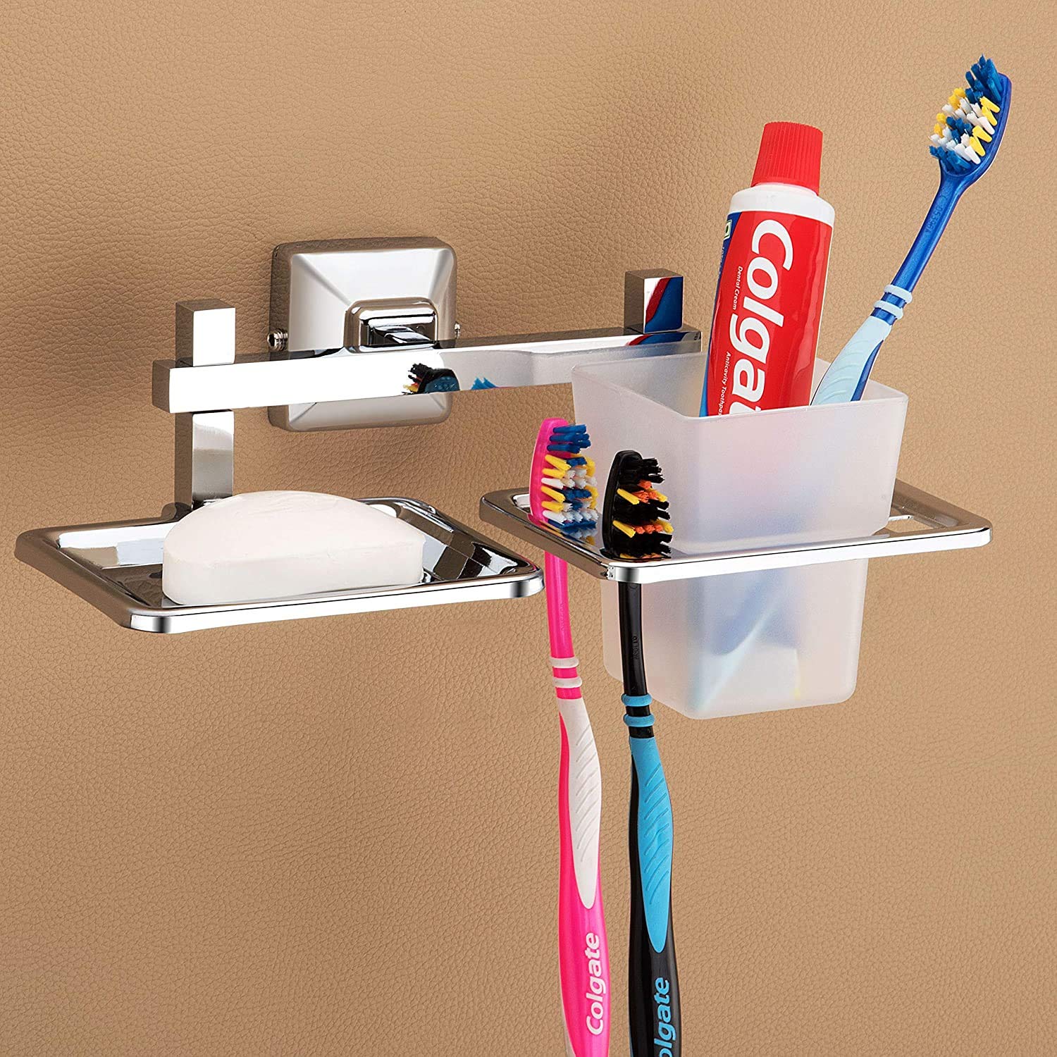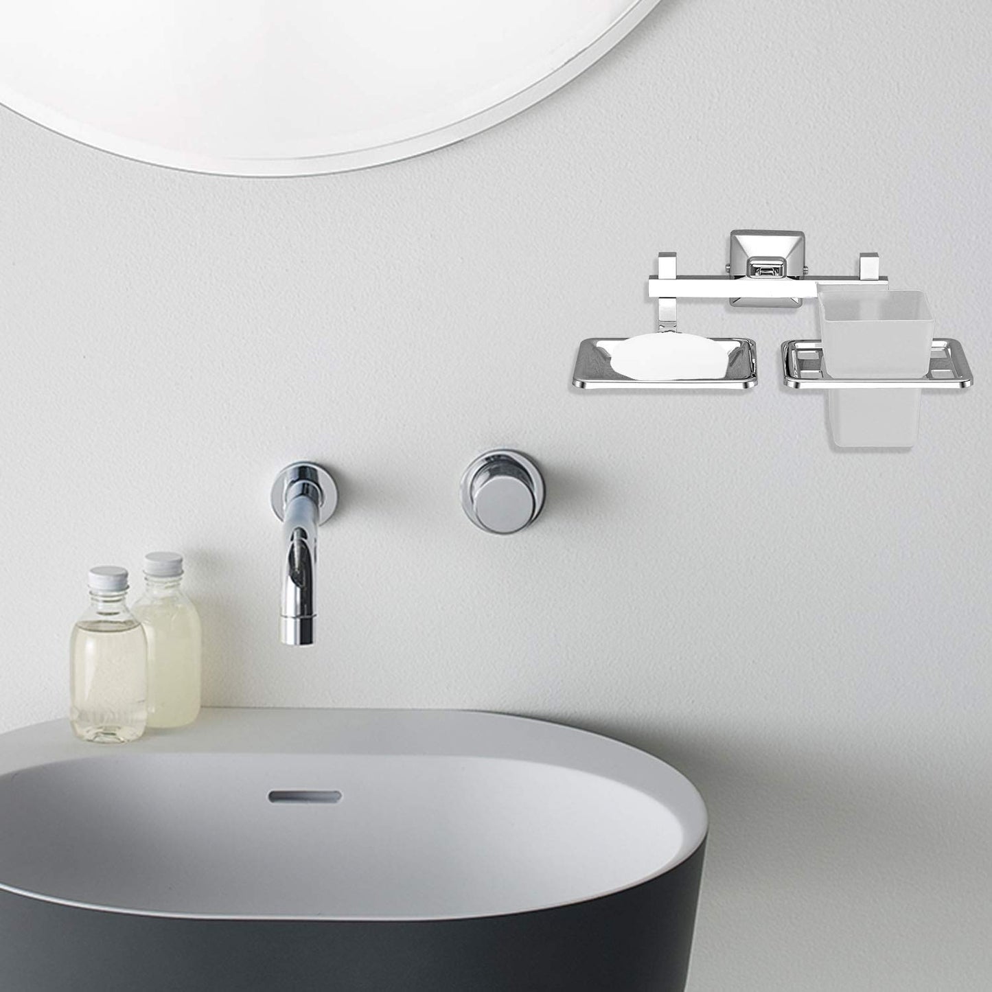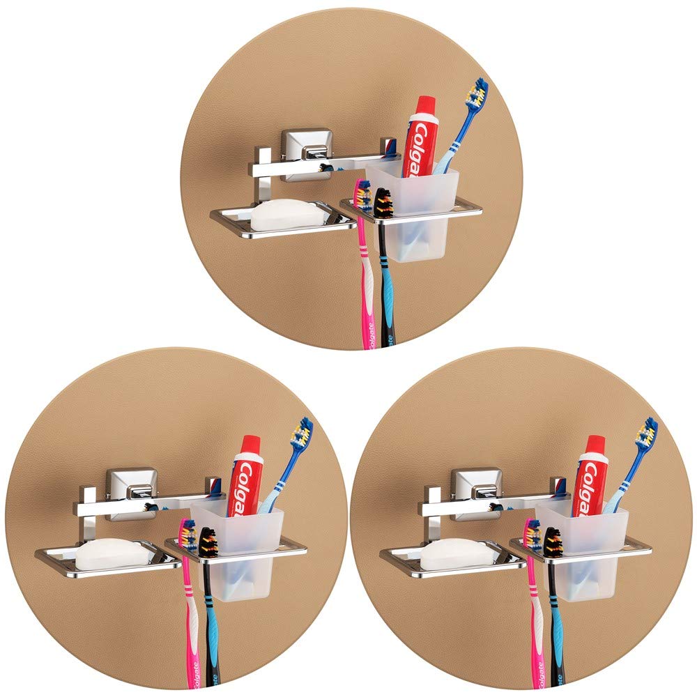 Stainless Steel 304 Grade Squaro 2in1 Soap Holder with Tumbler Holder/Bathroom Accessories(Chrome) - Pack of 3