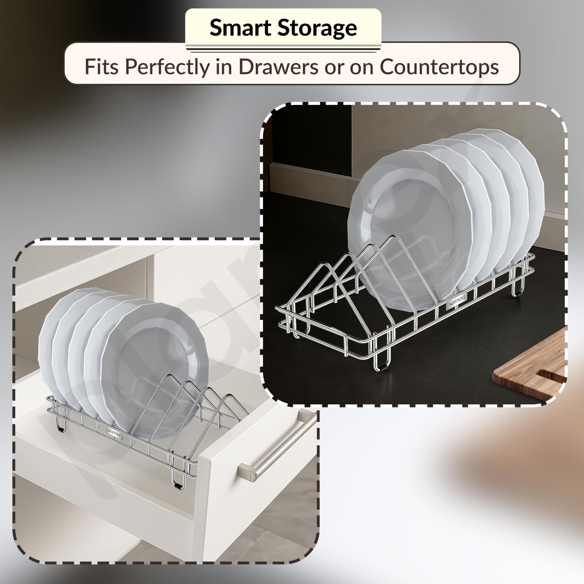 - 2-in-1 Functionality: This versatile rack not only holds your plates but also allows them to dry and drain, eliminating the need for a separate utensil dryer.